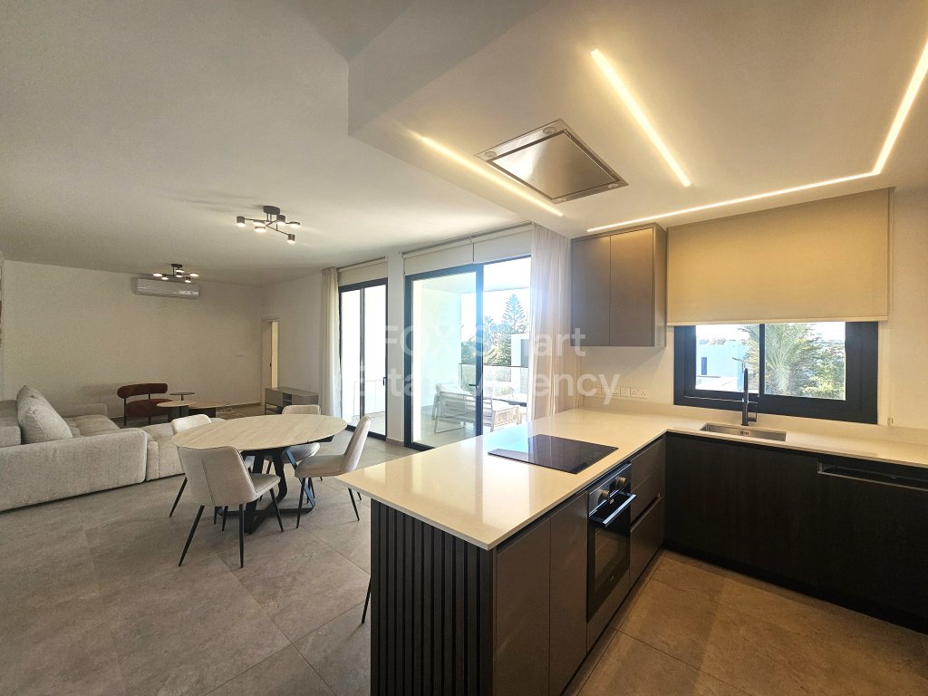 • Φωτεινός και άνετος ενιαίος χώρος καθιστικού–τραπεζαρίας με μοντέρνα κουζίνα open-plan.