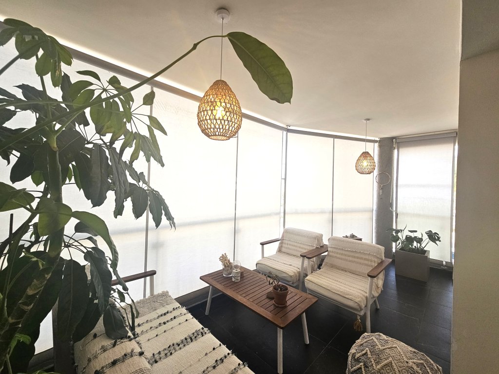 • Large covered balcony with outdoor furniture, perfect for relaxing or entertaining.