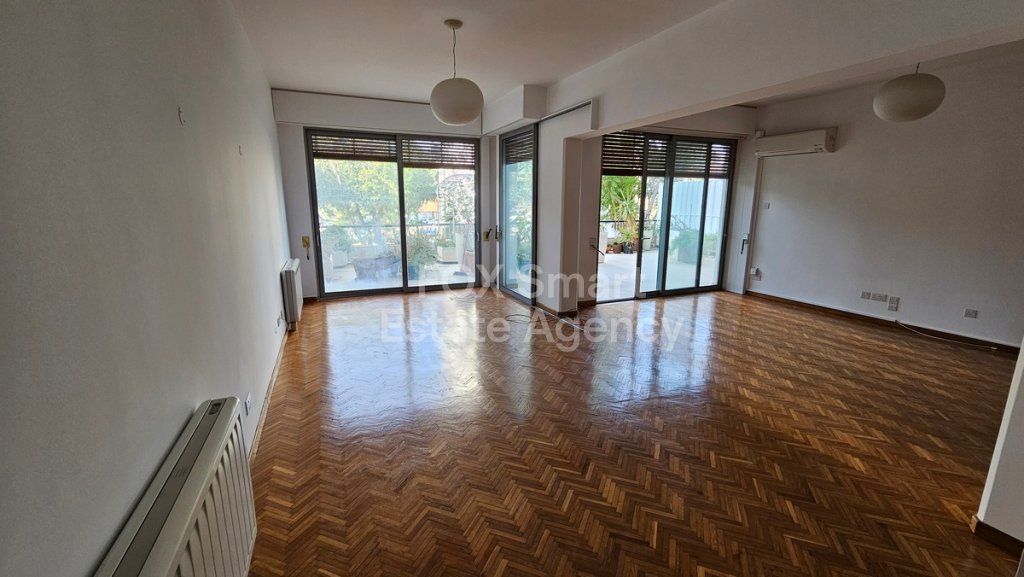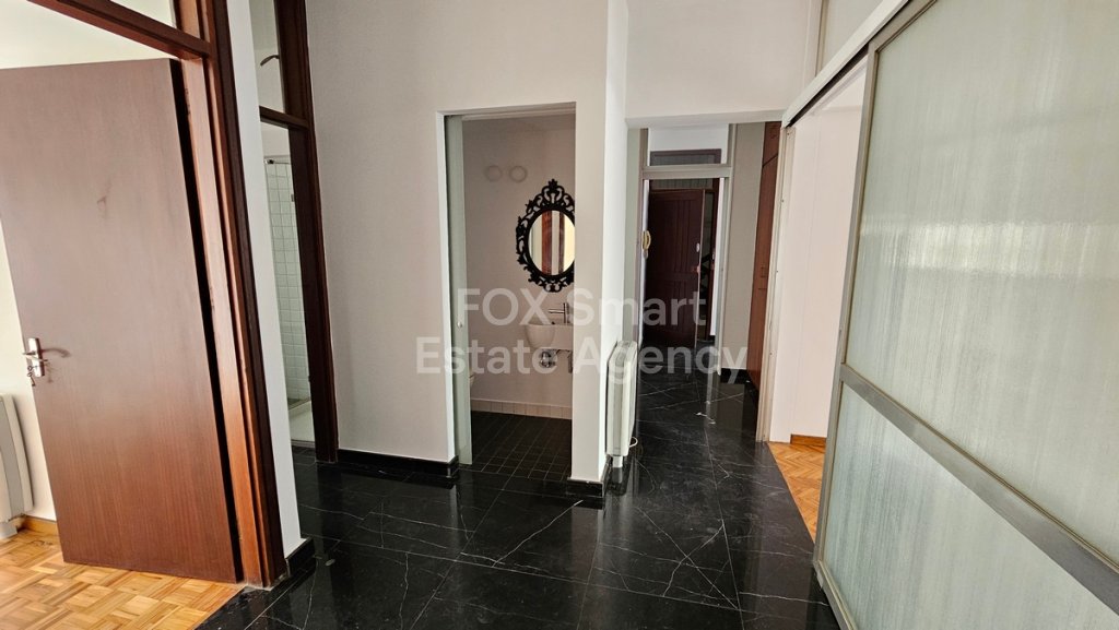 Charming apartment in the centre of Nicosia. Completely renovated central apartment in a 60s building by the internationally acclaimed Cypriot architect Neoptolemos Michaelides, enjoying correct light and air orientation throughout the year. It is a 150 square metres apartment plus 2 verandas (of 50 and 20 square metres), has 3 bedrooms (2 doubles and one single) living and dining area of 40 square metres, bathroom with bath tub and shower, courtesy guest loo, kitchen and pantry room. All rooms open to either one of the verandas receiving natural light throughout the day. The apartment has retained some of its original details. Floors are of wooden parquet and marble. Independent central heating and covered parking. AVAILABLE FROM 1ST DECEMBER.