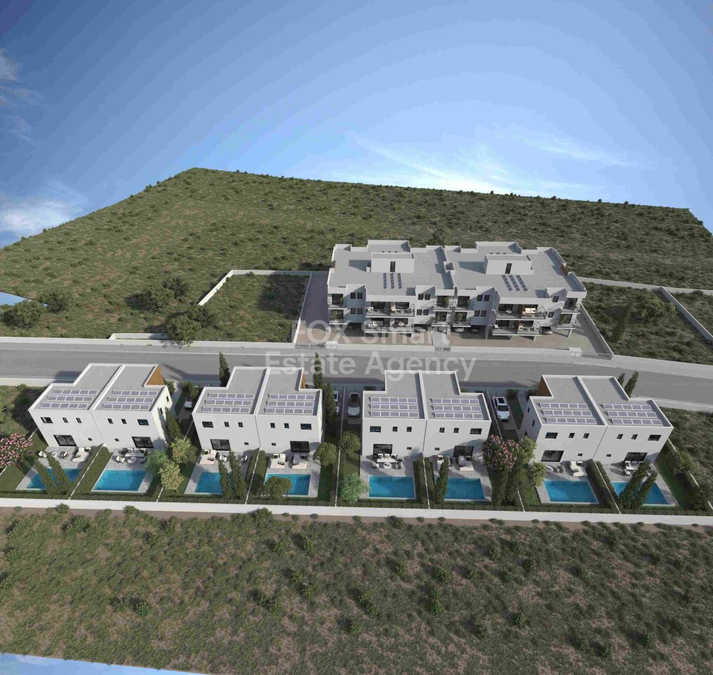 A distinctive residential development located in Deryneia, comprising 8 modern three-bedroom villas with an optional private swimming pool, along with 15 stylish apartments featuring a communal rooftop swimming pool.