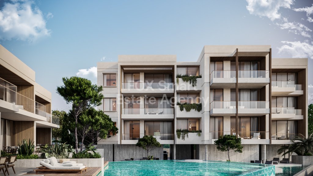 Two bedroom, ground floor apartment for sale, in Kapparis area, not far from the blue beaches of Protaras. The apartment is located in a gated complex with a common pool and will be delivered by June 2026. Spacious living areas, two bedrooms, two bathrooms and parking space.