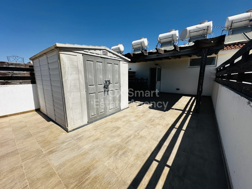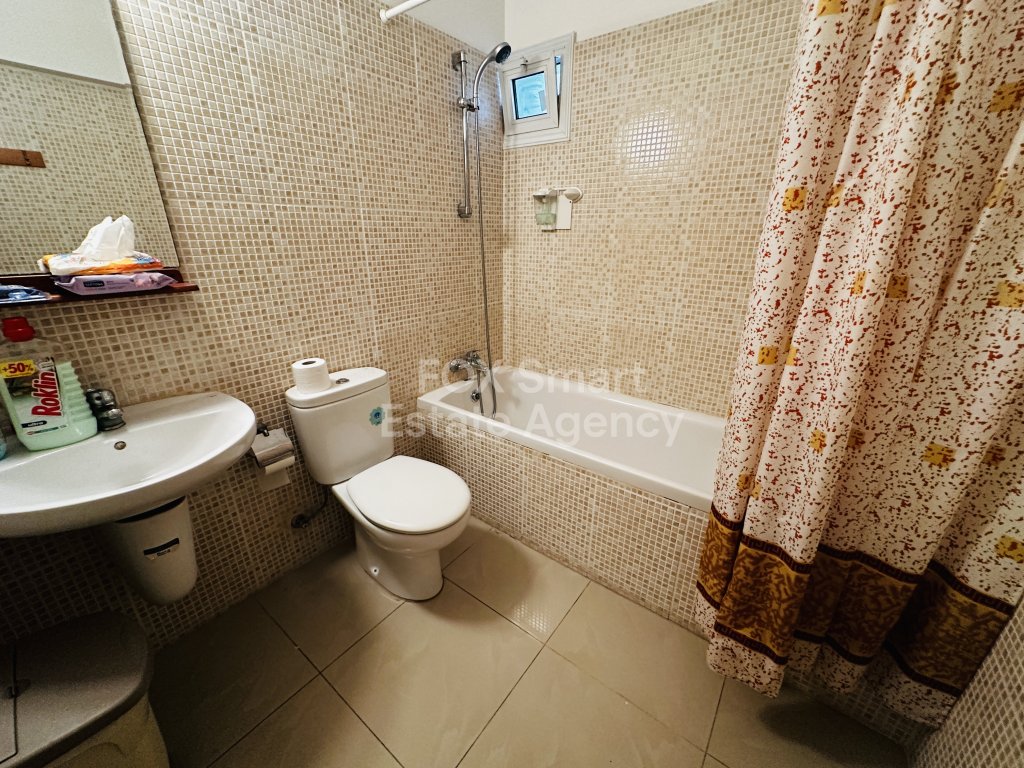 One bedroom apartment that has a huge balcony/ roof garden. The balcony has a big shed that you may store items. This apartment is including all white goods and all the furniture. The two sofas turn into beds for guests. The apartment is walking distance to the Main Street of Paralimini. Locate very close to the English School, big supermarkets, many other stores, and close to bus stops. Seven to ten minutes away from the beautiful beaches. For further details contact Mary.