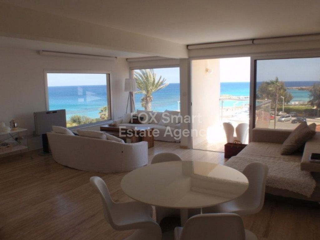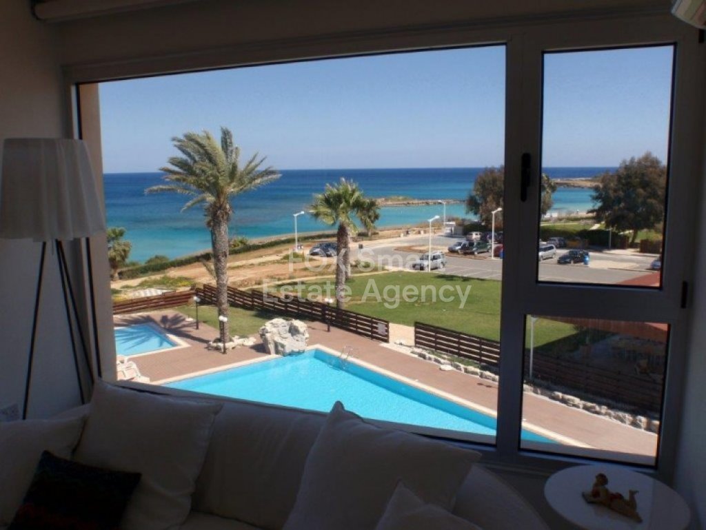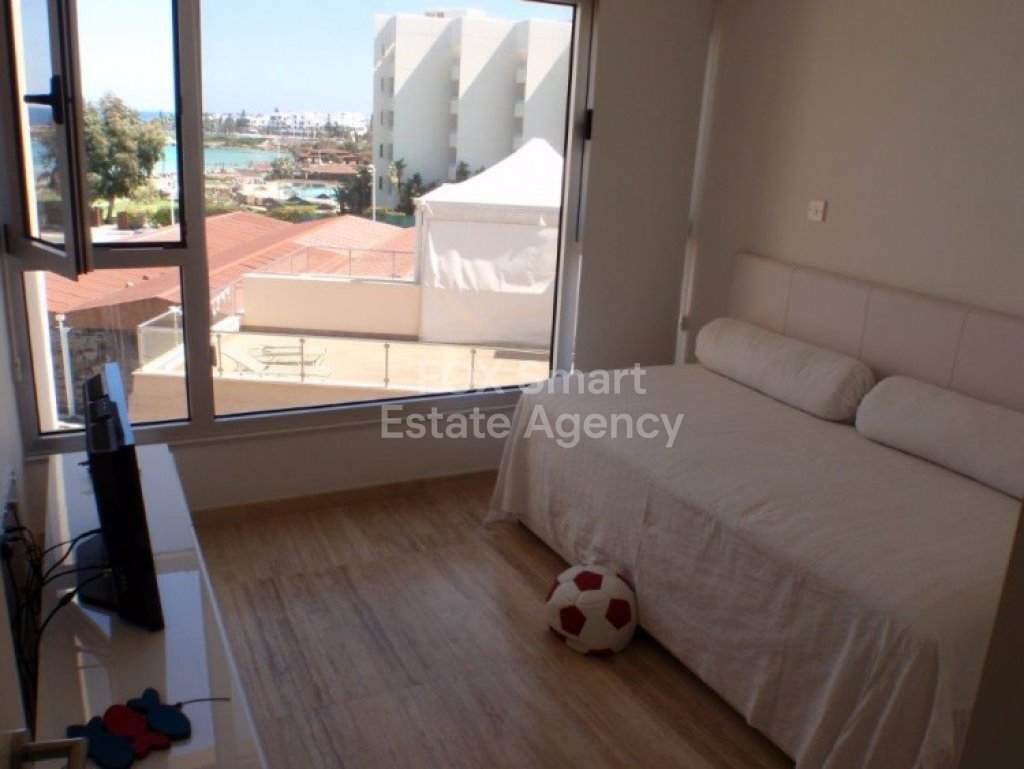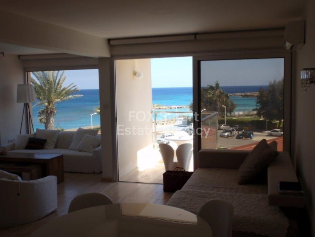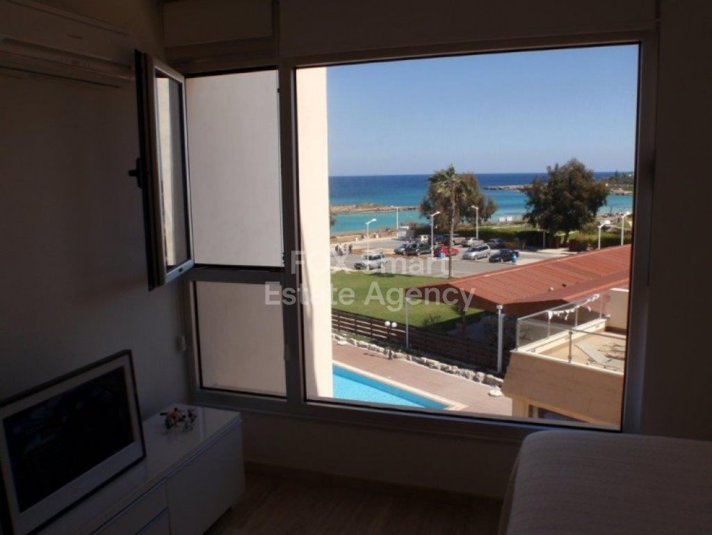 Two bedroom front sea-view apartment for sale in Protaras. A very modern apartment in the heart of Protaras on the third floor of a beautiful building. It has 2 private covered parking places on the ground floor and a private storage room in the basement. Huge communal pool. Communal garden 100 sq.m. Very expensive marble in all the apartment. Close to all the amenities and the beautiful beaches Protaras has to offer! The whole building was renovated in 2008.