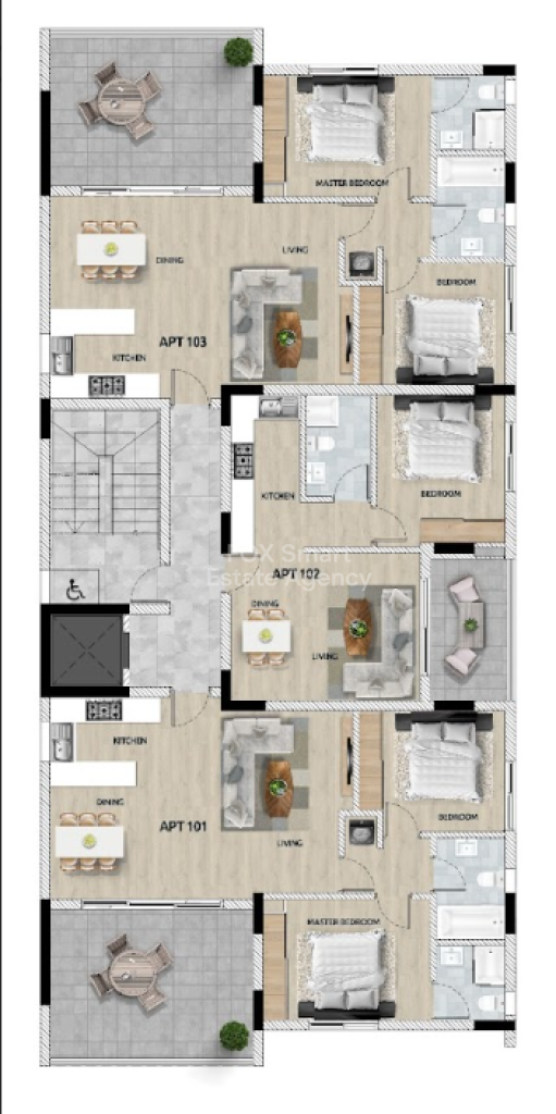 Each apartment is designed to maximize comfort and space with open plan Kitchen/Dining/Living areas which open up to a nice covered balcony.