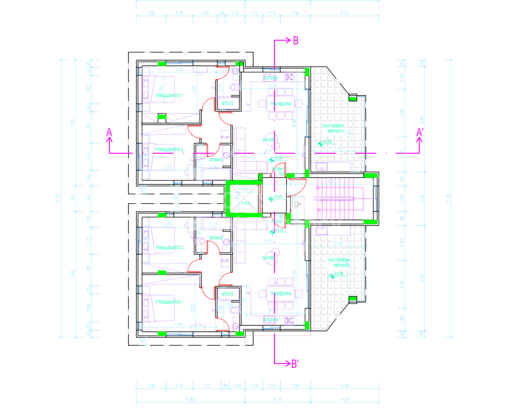 Two bedroom apartment, in a quiet residential area, under construction, for sale. Open plan living and kitchen area, two bedrooms, master bedroom en-suite, a whole bathroom, large covered veranda, covered parking space and a storage room. The project will be delivered by September of 2026.