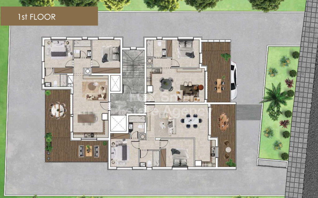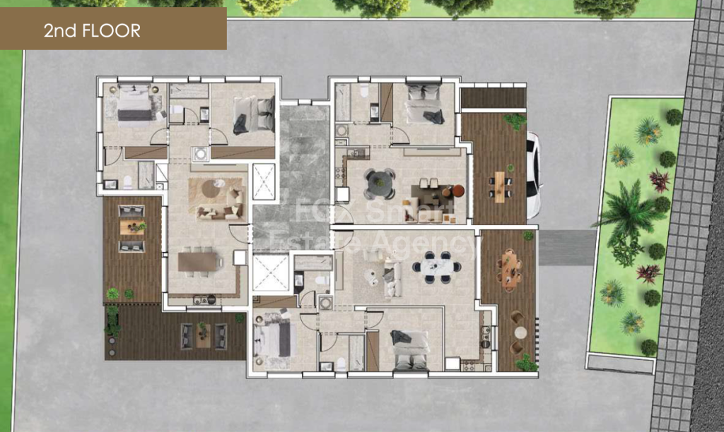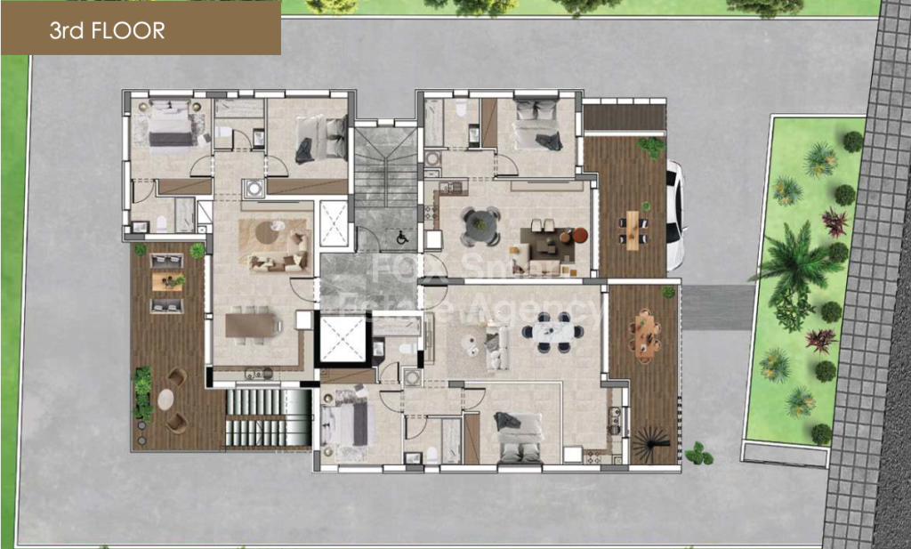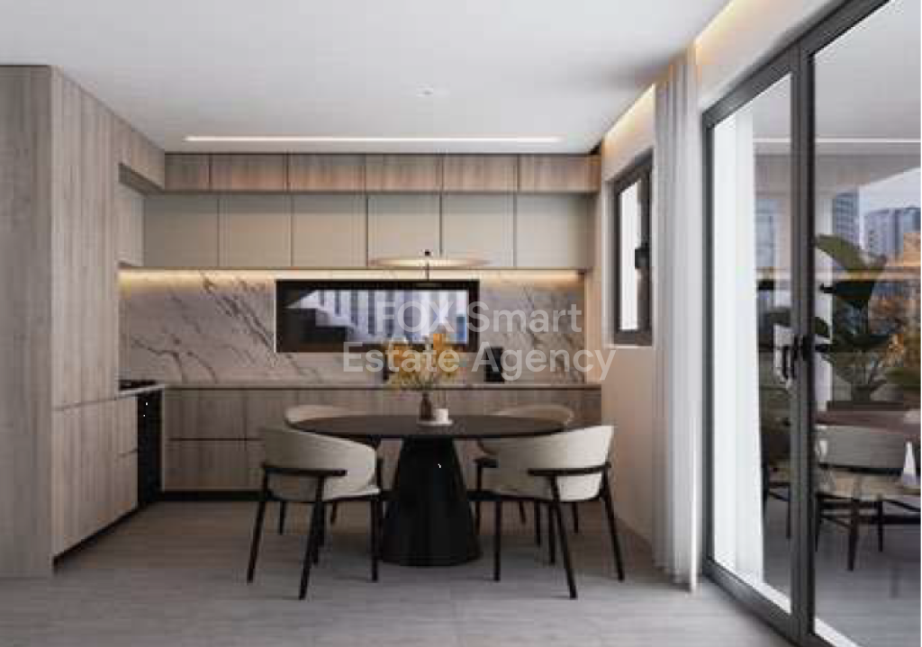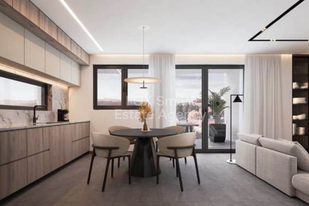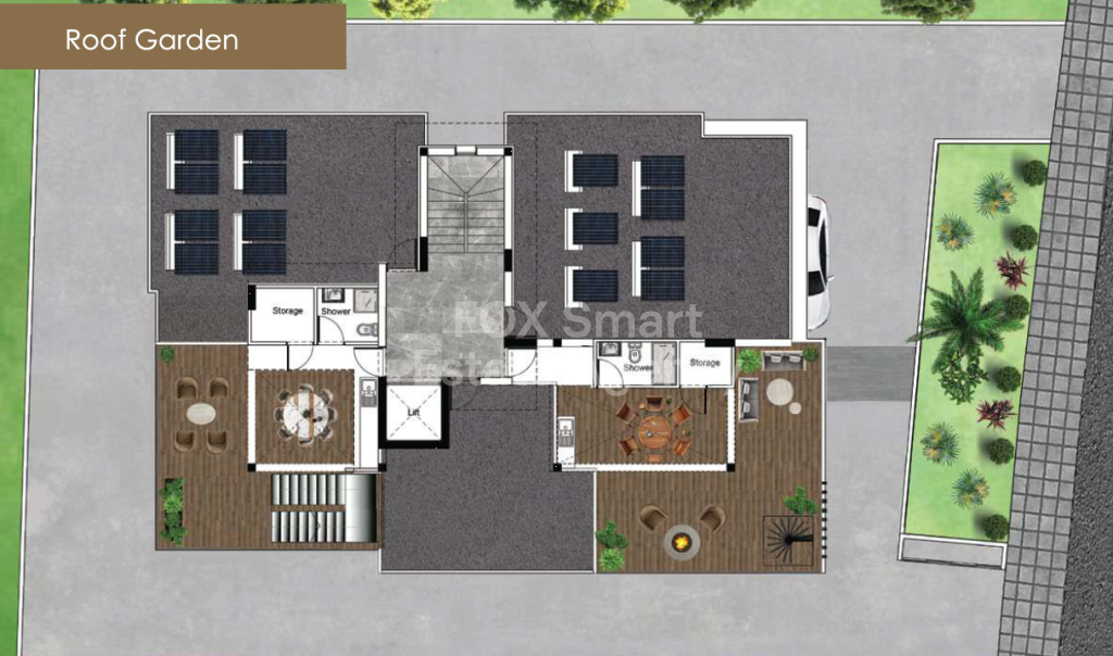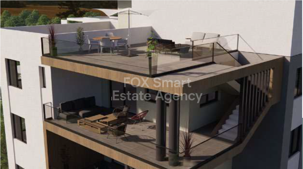 Under-construction top-floor 2-bedroom, 2-bathroom apartment for sale in Aradippou, featuring a private roof garden with an additional bathroom and storage room, and delivery scheduled for November 2026.