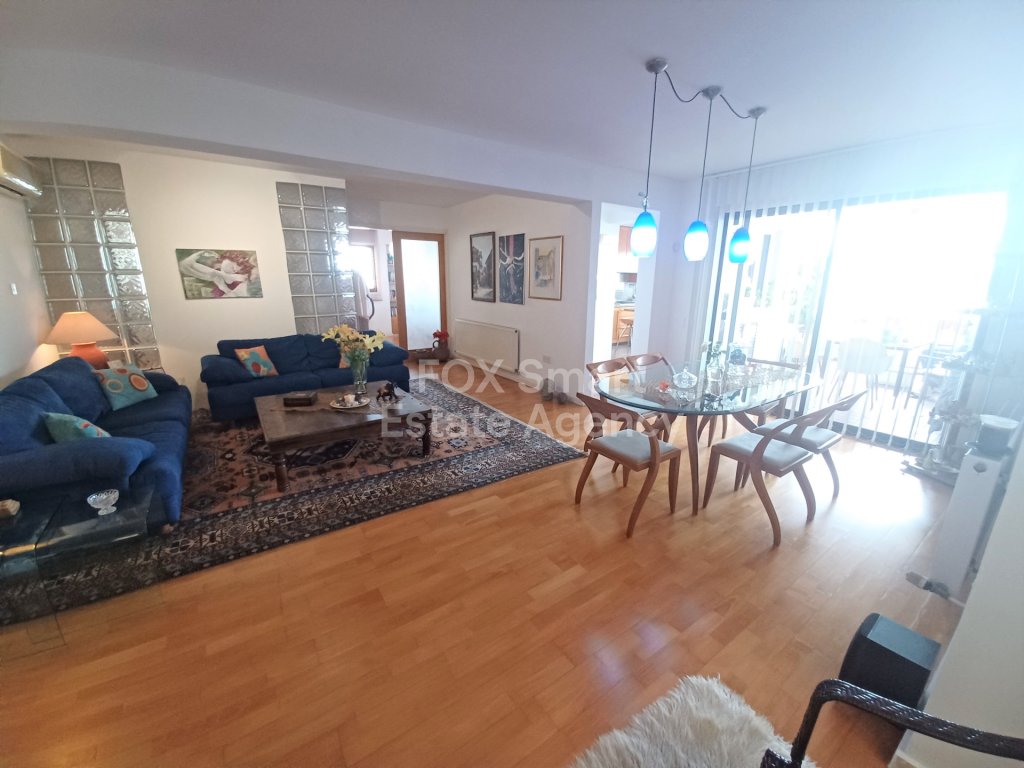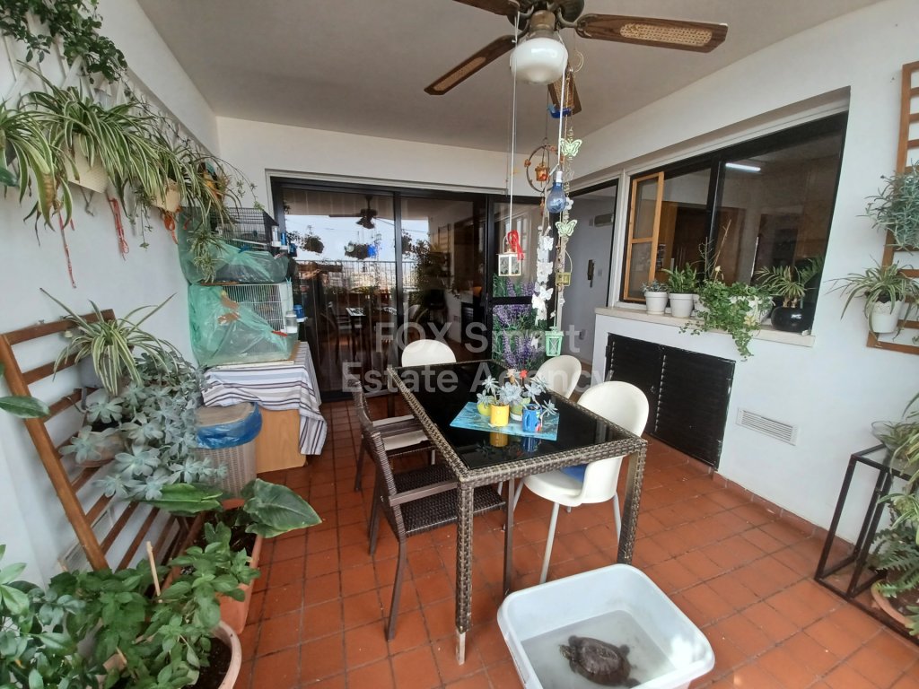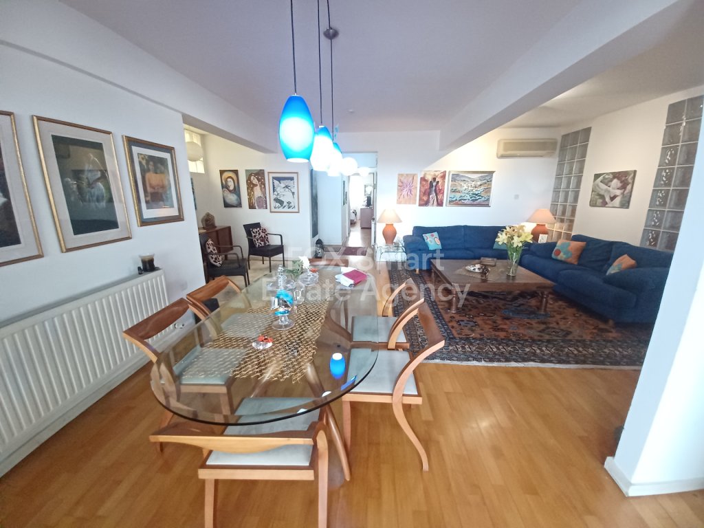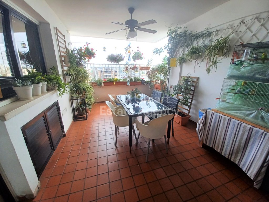 Four bedroom apartment in a prime location, well maintain, on the top floor.The apartment is 169sq.m, with two parking places, one is a close up garage, two storage, central heating, A/C and plenty of storagecupboards. Open living and dinning, separate tv room, kitchen and a covered veranda at the front. Master bedroom en suite,three more bedrooms and a whole bathroom.