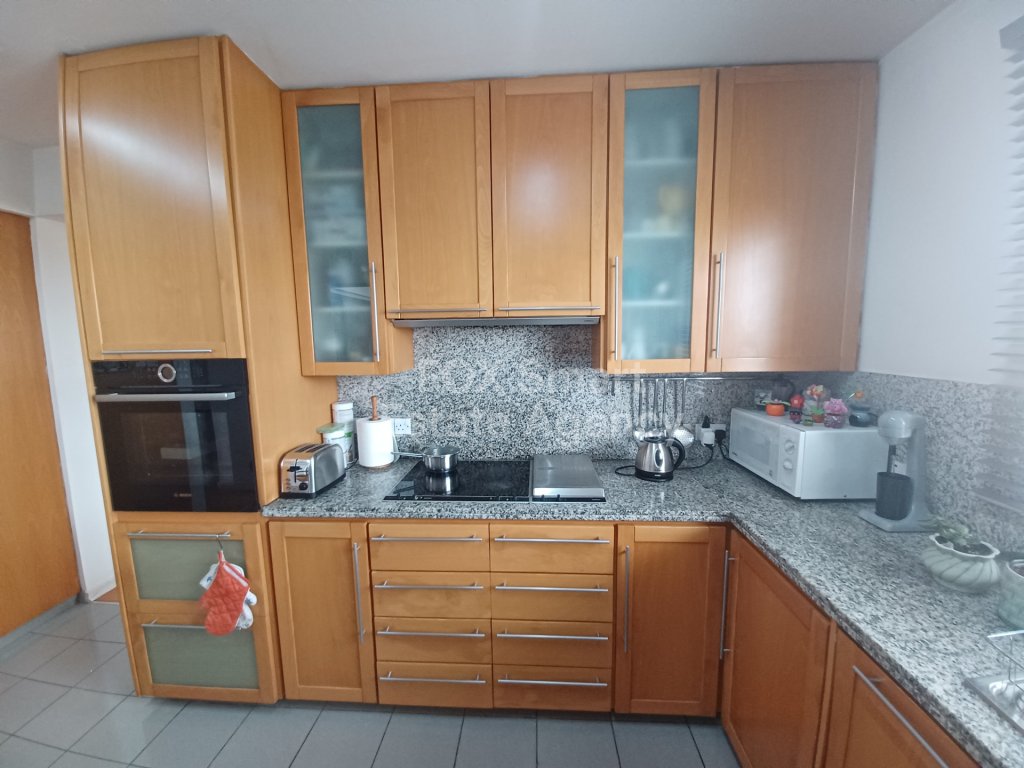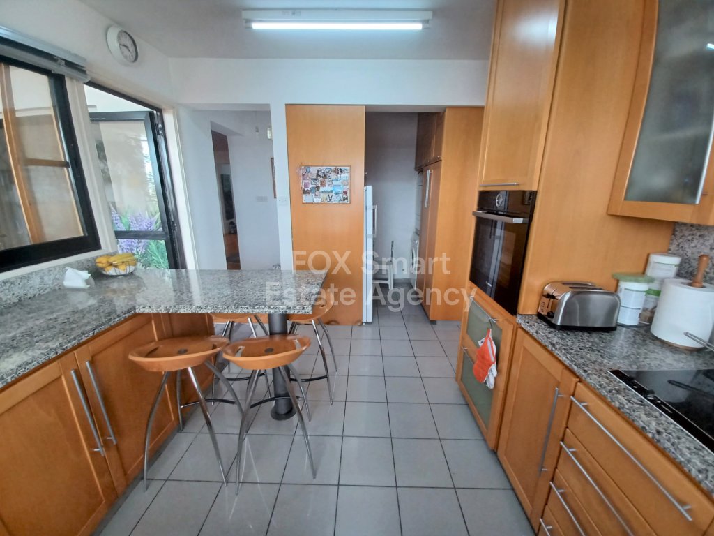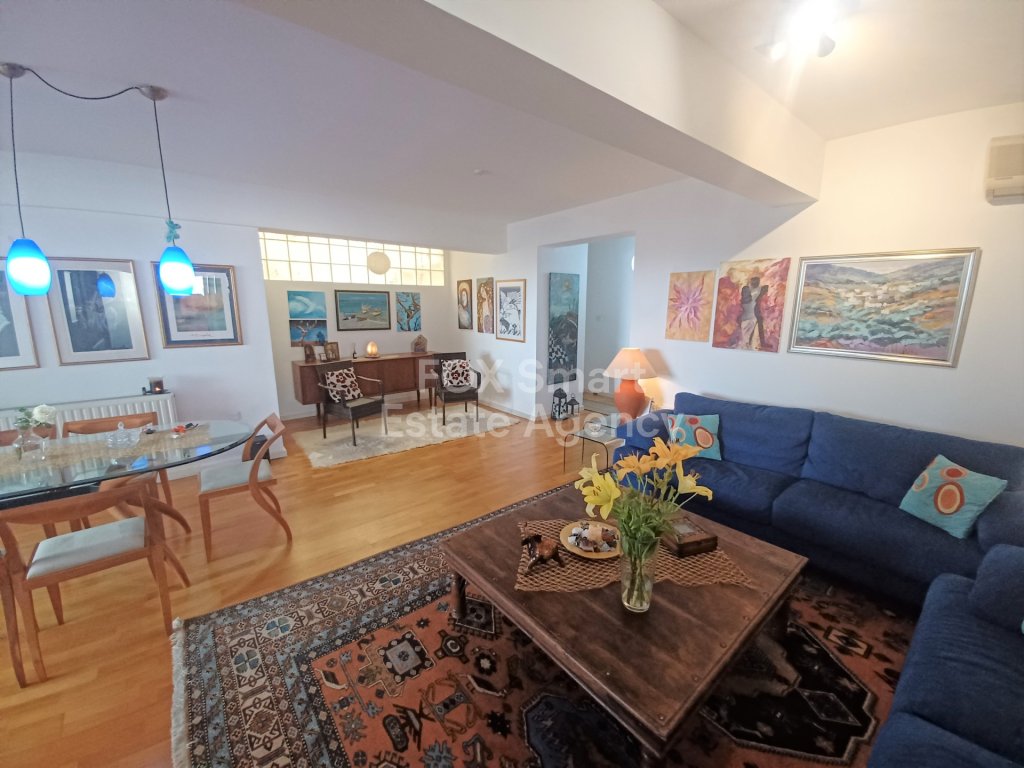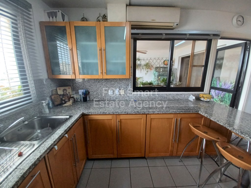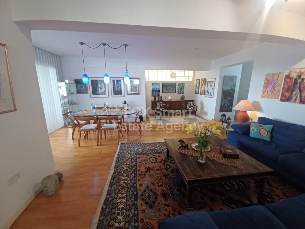 Four bedroom apartment in a prime location, well maintain, on the top floor.The apartment is 169sq.m, with two parking places, one is a close up garage, two storage, central heating, A/C and plenty of storagecupboards. Open living and dinning, separate tv room, kitchen and a covered veranda at the front. Master bedroom en suite,three more bedrooms and a whole bathroom.
