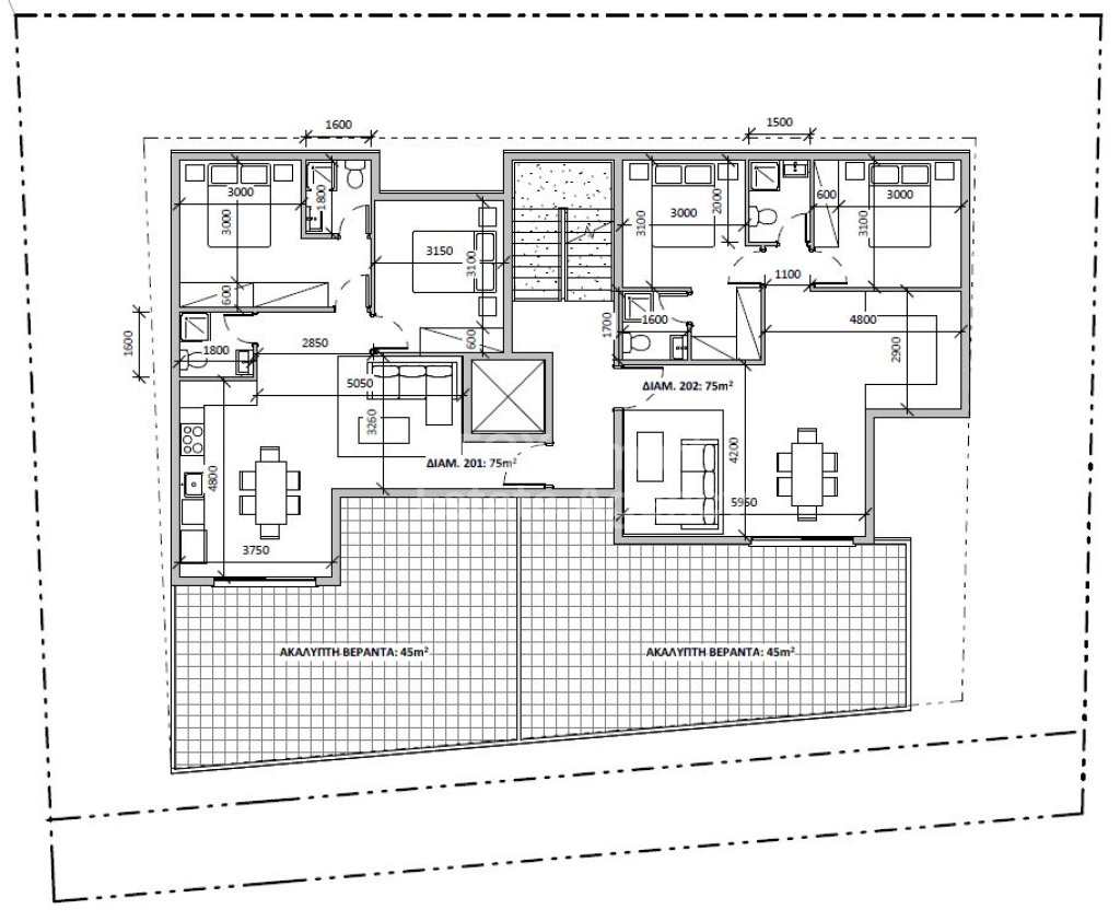 Under Study, contemporary 2 Bedroom Top Floor Apartments of 75sqm. internal area and 44sqm. verandas, on the 2nd floor of a 2-storey residential building in Kiti.