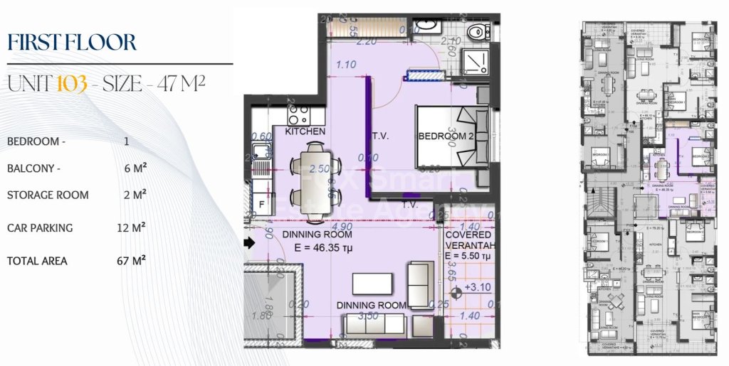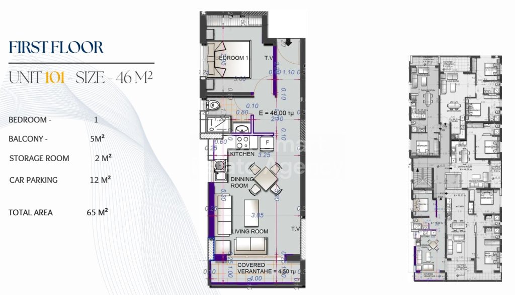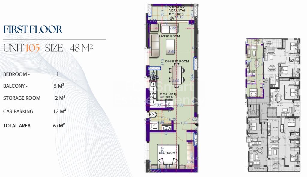 The apartment is on the 1st floor of an A' energy efficient residential project of 10 units, perfectly located in a quiet area within walking distance to the village square, close to all amenities, 4min. drive to the beach, 8min. to the airport and about 15 min. to Larnaca.