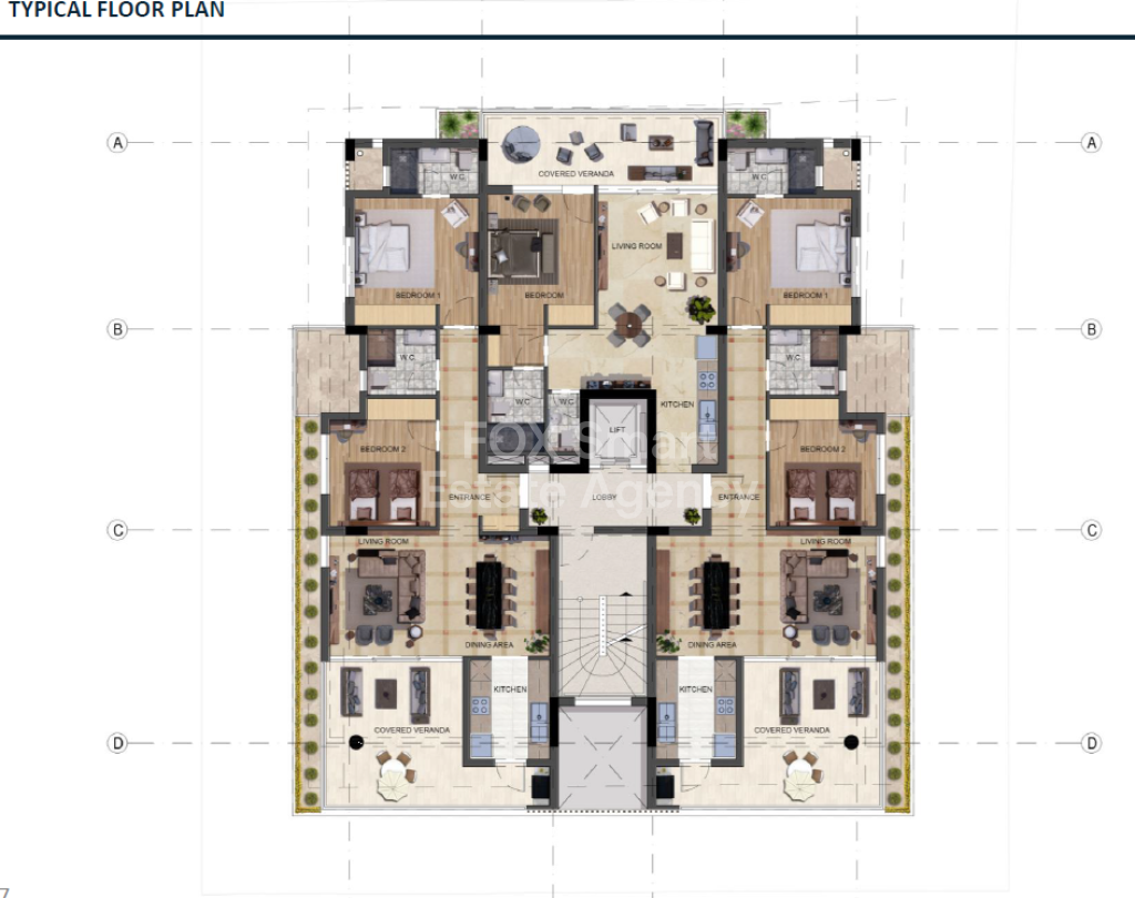 A contemporary 2-bedroom apartment ideally located within walking distance of Agios Lazaros Church and the beach. The property features an open-plan living and kitchen area designed for modern living, a master bedroom with en suite bathroom, a second comfortable bedroom, and an additional well-appointed bathroom. The apartment benefits from a large covered veranda, perfect for outdoor dining and relaxation.