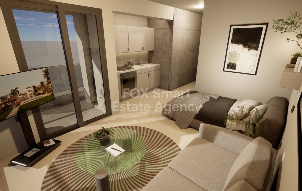 This modern off-plan studio apartment in central Larnaka offers a smart, efficient open-plan layout with contemporary finishes and a bright, comfortable interior.