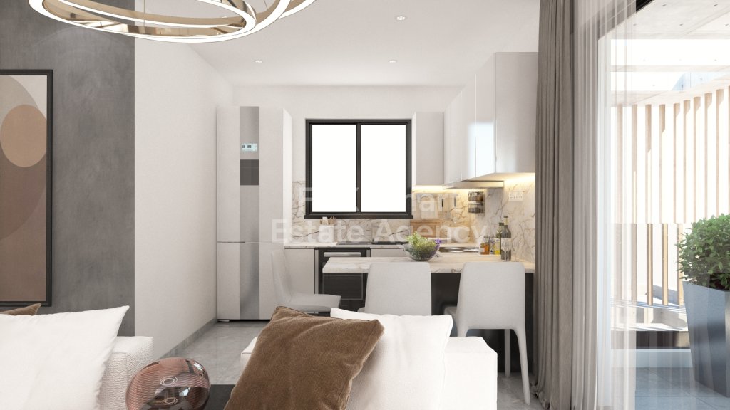 Spacious 2-bedroom apartment located just minutes’ drive from the beach and a wide range of amenities. It features an open-plan living and kitchen area, master bedroom with en-suite, a full bathroom, large covered veranda, covered parking, and a storage room. The building offers high-end facilities including a gym, sauna, while the overall project includes a communal swimming pool and landscaped park. Project delivery expected by end of 2027.