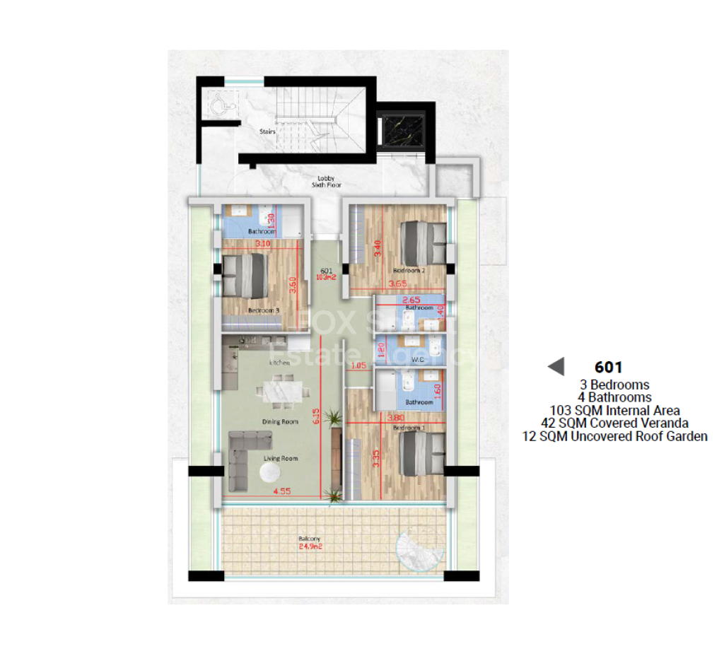 Under Construction 3 Bedroom Top Floor Apartment of 103sqm. internal area, 42sqm. covered and 12sqm. uncovered Roof Garden area on a 6 storey luxurious residential building.