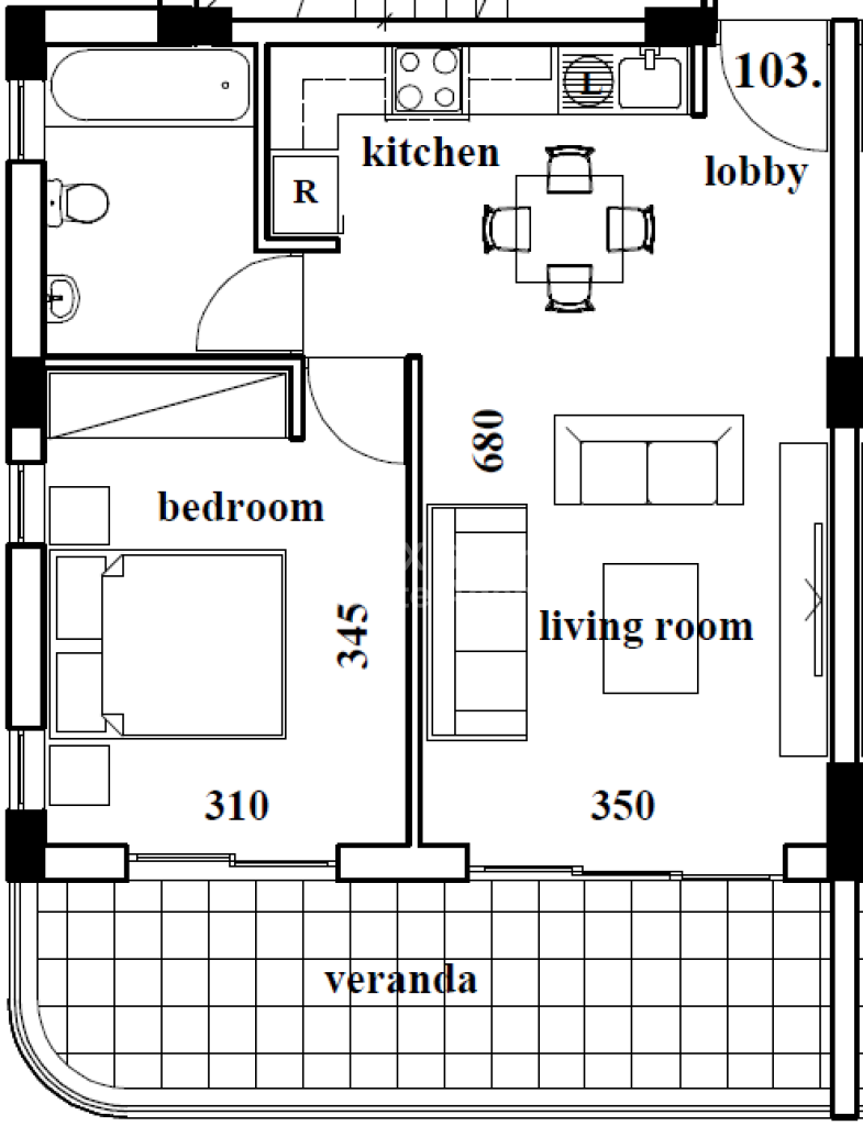 1 Bedroom Apartment with a pool view, in a gated community, with reception, gym, club house, green areas and communal pool. The project is located close to a plethora of amenities and minutes drive from the beach. The apartment consists of an open plan living and kitchen area that extends to the large covered veranda, one bedroom, one bathroom and one covered parking space. The project is under study and expected to be delivered by May 2027.