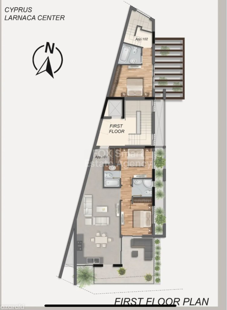 An apartment is offered for sale in the area of Spiros Kiprianou, Larnaca. With 2 bedrooms and 2 bathrooms, a spacious living room that seamlessly merges into an open plan kitchen. There is one apartment on each floor. The apartments are decorated in a designer style. High-quality finishing works, including solar panels and a spacious covered veranda. The apartment has its own covered parking space. It is located near the sea and urban infrastructure, providing convenient access to all necessary facilities.