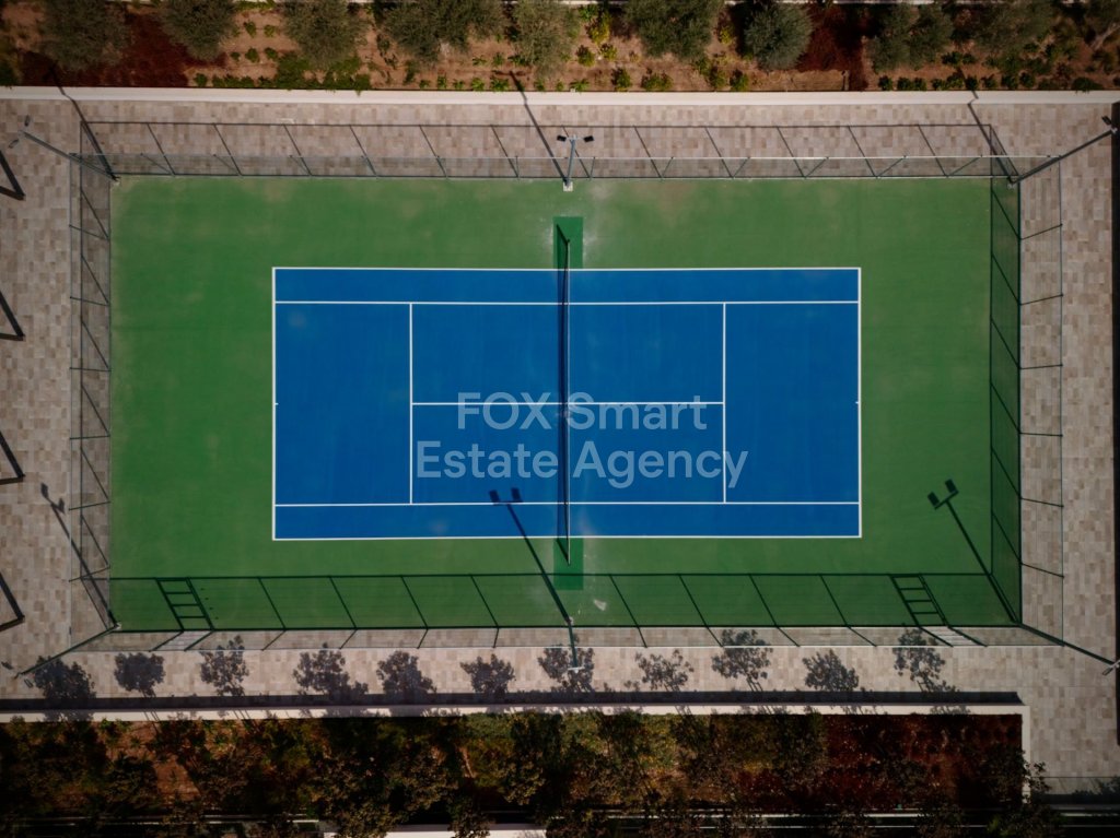 Tennis court and open-air yoga terrace.