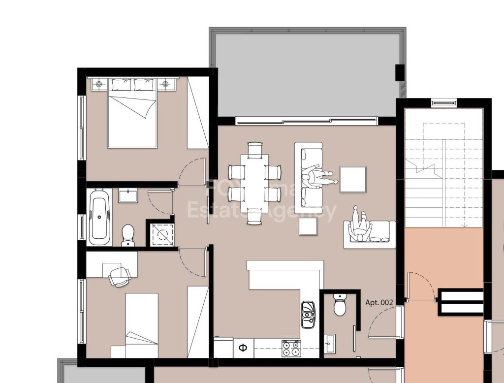 For sale: Spacious 2-bedroom apartment under construction in the desirable Panthea area. This modern home offers 81.72 m² of internal space plus 16.18 m² covered verandas, providing plenty of room for comfortable living. With 2 well-designed bathrooms and an open layout, it is perfect for families or couples looking for a new home.