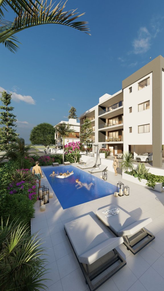 A uniquely designed modern style apartment project. Located in the mature residential area of Limassol (Polemidia District). This modern apartment consists of two 4-story buildings, one with four apartments on each floor and the other with three apartments on each floor. The roof garden and the relaxation area of the apartment offer breathtaking city views. All units have natural light on three sides of the apartments. Each has a balcony and a storage room. There is a swimming pool and other functional spaces The design of multiple balconies and multiple terraces allows residents to truly enjoy the romantic life of the sunny Mediterranean