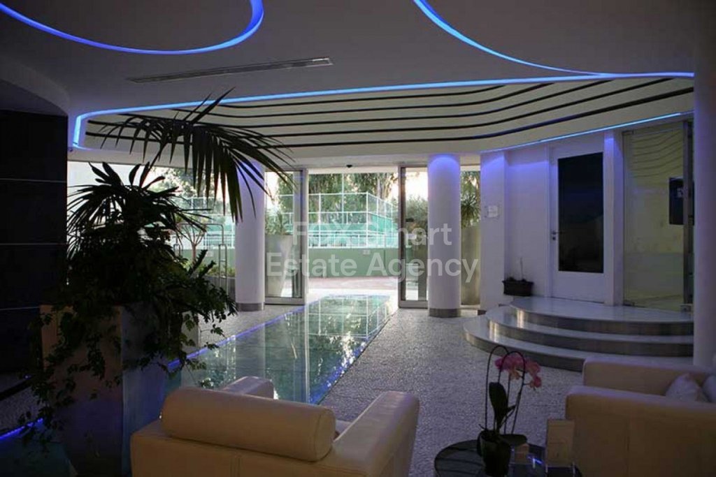 The building is a stylish and contemporary gated apartment complex. This wonderful apartment is perfectly situated in a prime location on a sandy beach on the Limassol sea front. It is the first residential property right next to the Dasoudi park, the city’s largest and only seafront park. The apartment is ideal for families with children and couples with exceptional taste. They are located in the heart of the cosmopolitan area of Limassol, with a variety of high quality choices for recreation, leisure and dining. The apartment has 2 bedrooms, 2 full bathrooms and an open plan living room and kitchen and is being offered fully furnished. The complex features include, swimming pool, gym, business center, sauna, kids corner and a spa and beauty center.