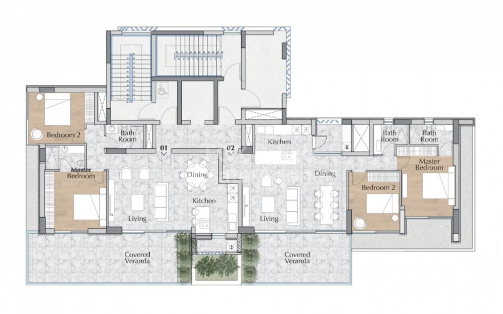 The layout includes two comfortable bedrooms and two stylish bathrooms, making it ideal for couples, small families, or discerning investors. The apartment is delivered unfurnished, allowing complete freedom to design and personalize the interior to your own taste.