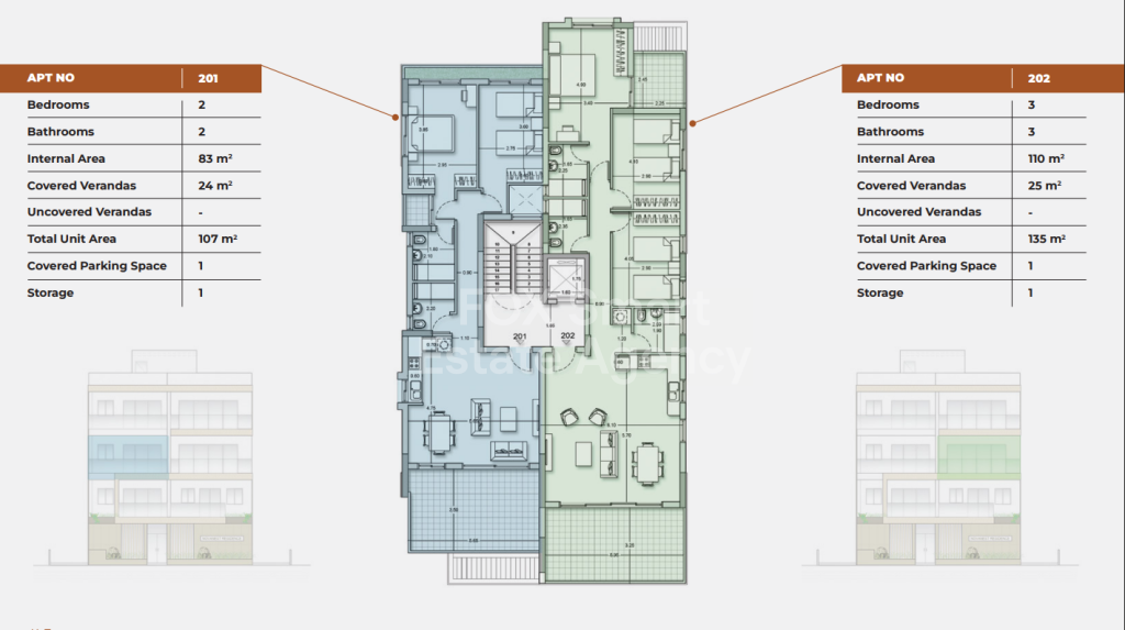 • This spacious second floor 3-bedroom apartment (202) with internal area of 110sqm plus 25sqm covered verandas.