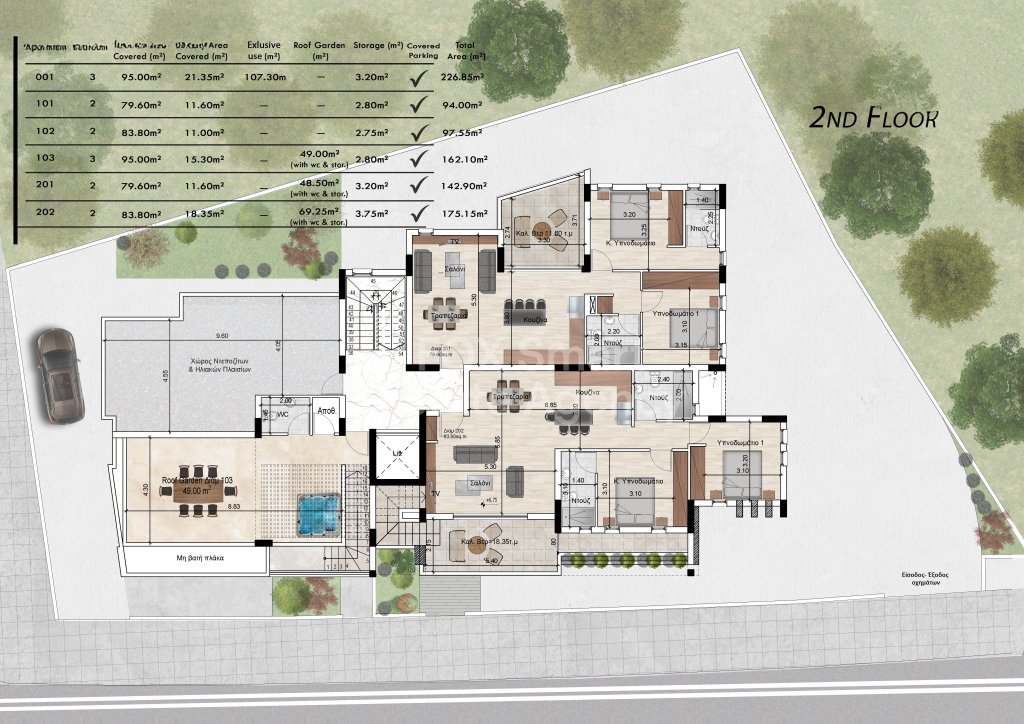 • Apartment 202: Internal area: 83.8 sqm