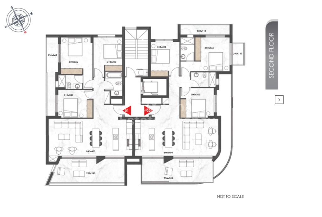 • The three-bedroom apartments with internal area of 105sqm and large verandas of 25 sqm, PRICED FROM 363000 +VAT.