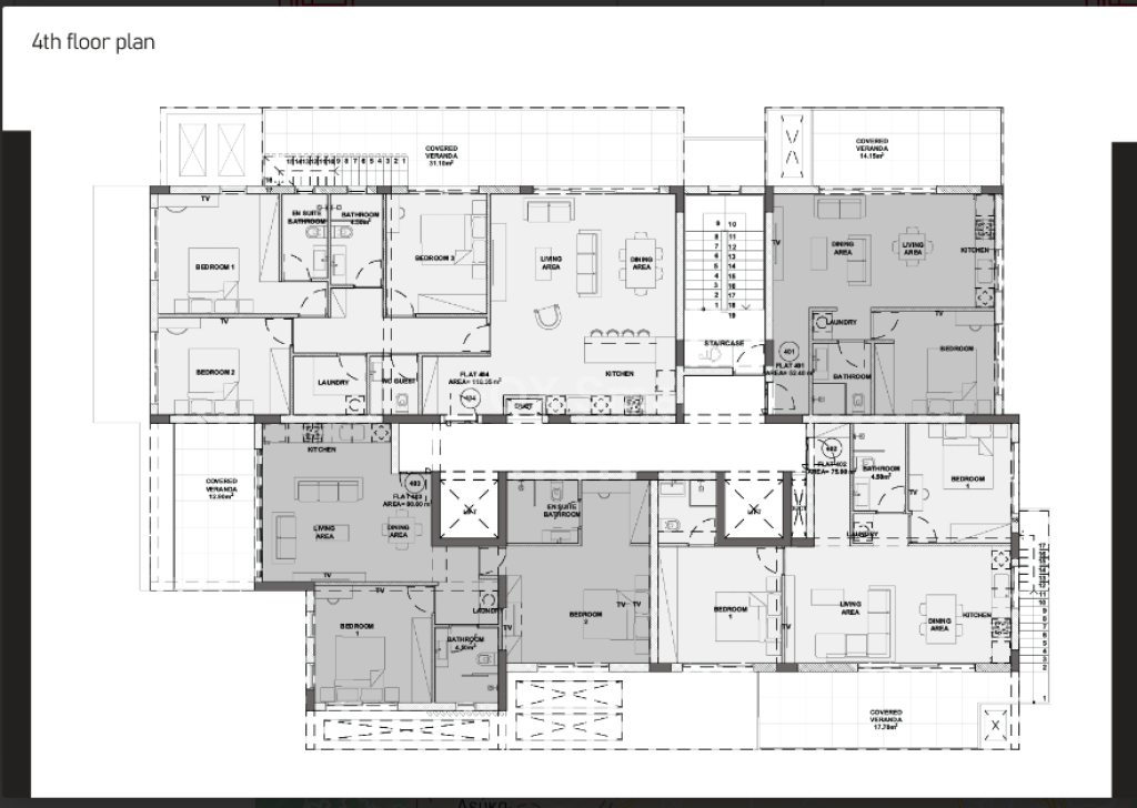 • The apartment (402) located on the 4rth top floor with large verandas and large roof garden of 76.5 sqm.