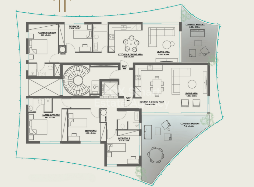 • This top floor apartment (302) located on the 3rd- floor with internal area of 123sqm, covered verandas of 36sqm and additional maids room of 11sqm on the ground floor..