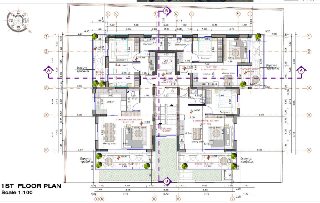 • The apartment 102 is situated on the first floor with internal area of 52.75sqm and covered verandas of 15.7sqm.