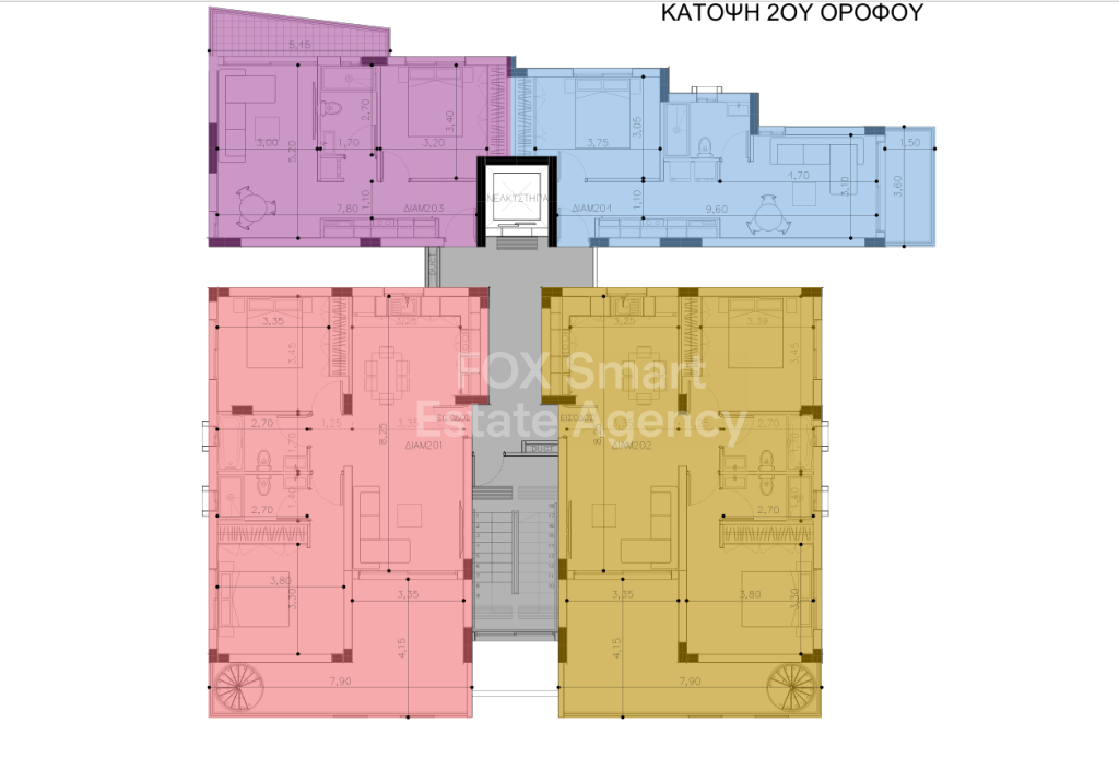 • Το Διαμέρισμα 203, στον 2ο όροφο, διαθέτει 50τ.μ. εσωτερικούς χώρους, 7τ.μ. καλυμμένες βεράντες.