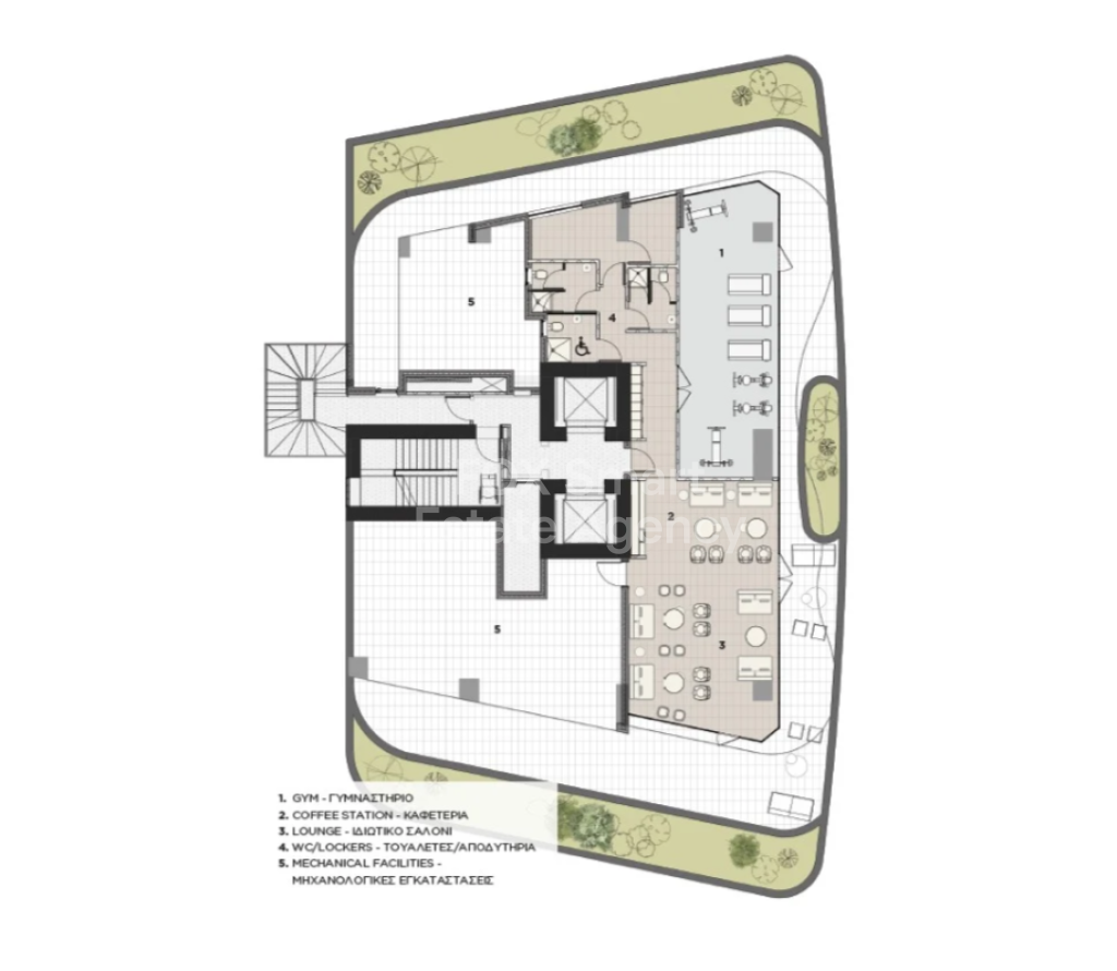o Spacious reception area with a lounge and concierge desk.