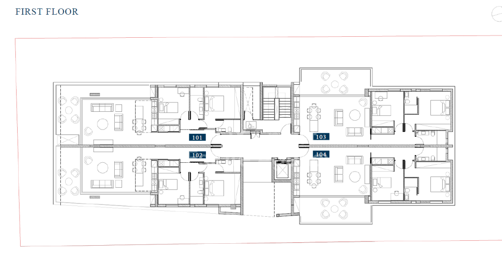 • Apartment 101 offers a comfortable internal area of 89 sqm, complemented by 20 sqm of covered verandas and additional 3sqm uncovered.