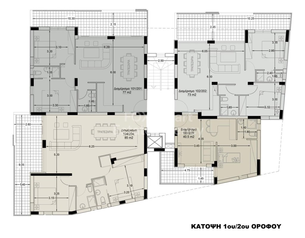 • The apartment (102) with internal area of 76sqm plus covered verandas of 21.7sqm.