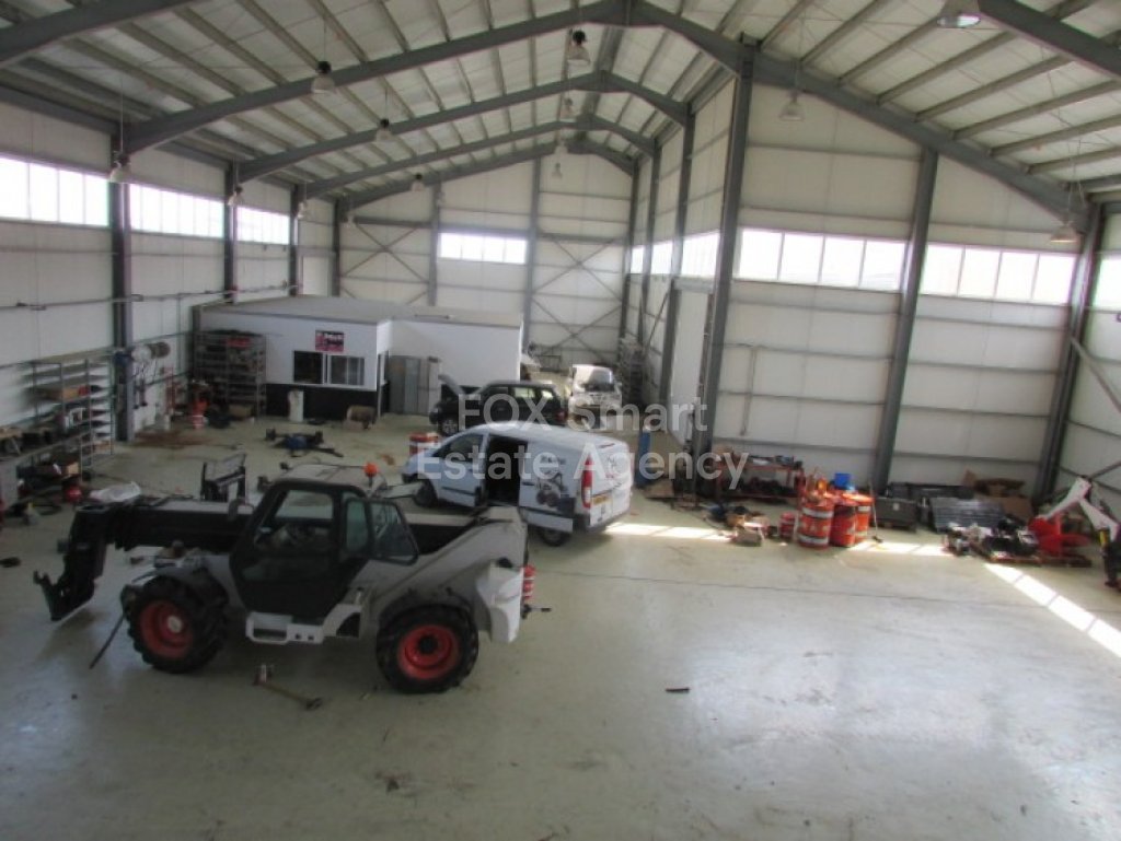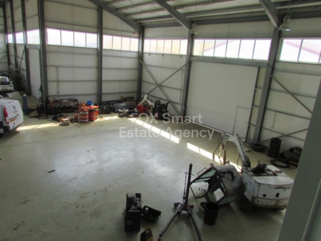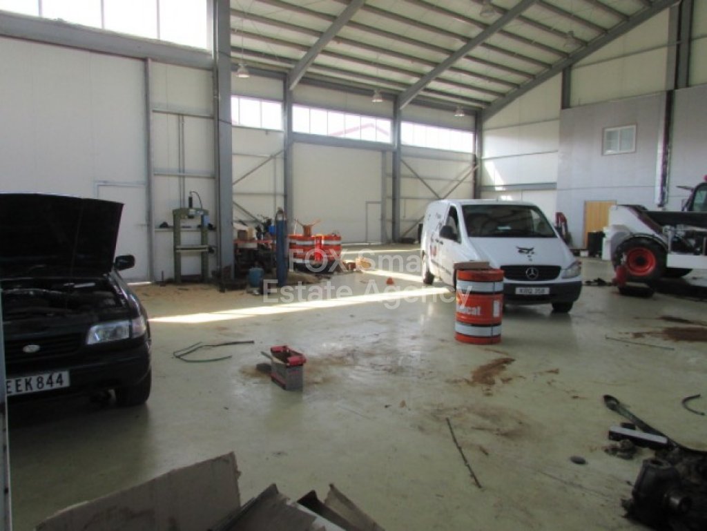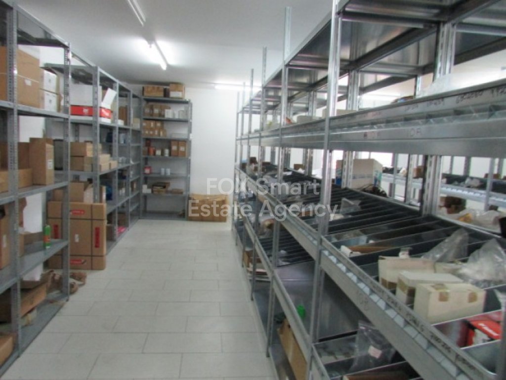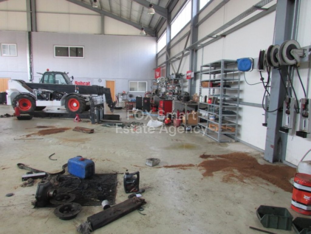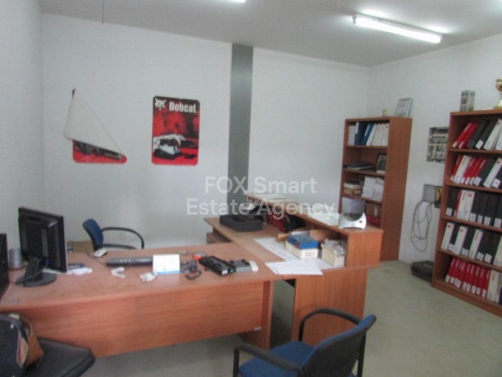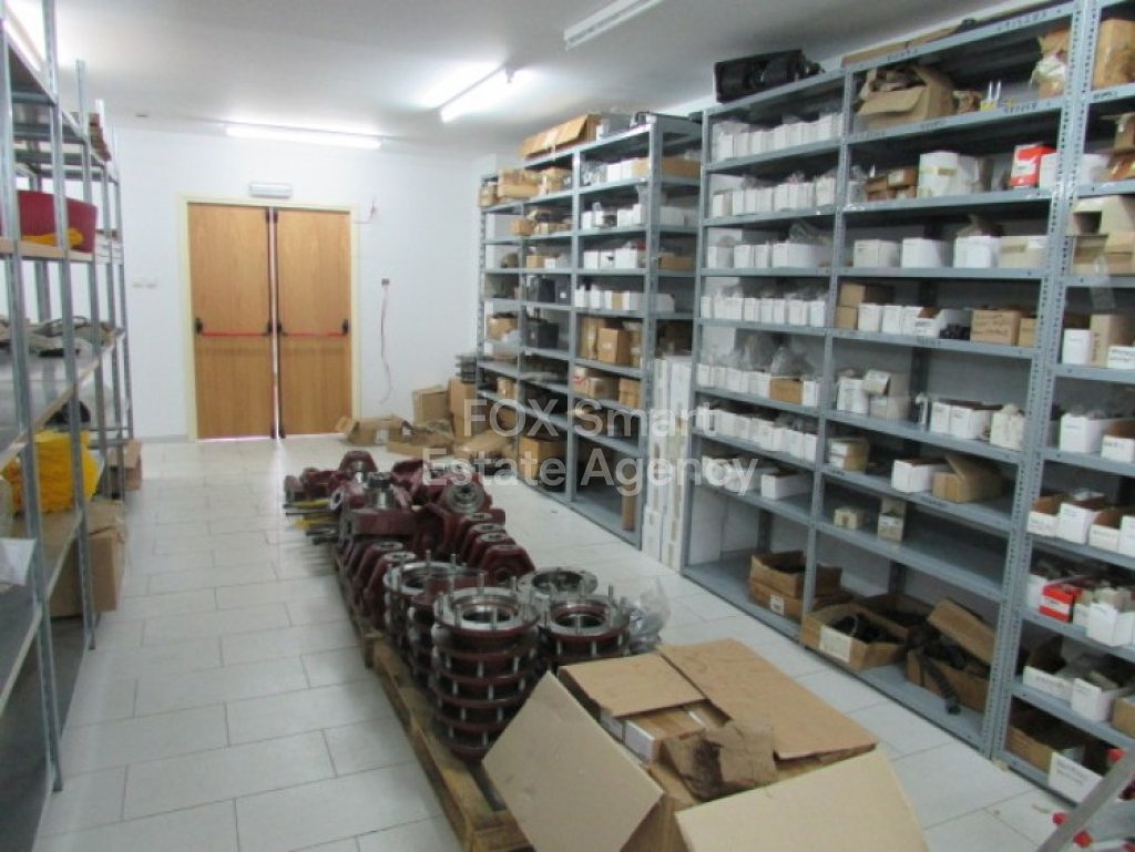 Στο τεμάχιο έχει ανεγερθεί βιομηχανική αποθήκη 670 τ.μ και με γραφειακούς χώρους 750 τ.μ. Ο γραφειακός χώρος αποτελείται στο ισόγειο από χώρο υποδοχής, σημείο πωλήσεων, γραφείο γραμματείας, κουζίνα με χώρο υγιεινής, χώρους υγιεινής ανδρών/ γυναικών/ αναπήρων και αποδυτήρια εργατών με αποχωρητήρια και ντους. Υπάρχει επίσης αποθηκευτικός χώρος. Ο όροφος αποτελείται από χώρο υποδοχής, πέντε γραφεία, γραφείο συνεδριάσεων, δωμάτιο ελέγχου Η/Υ , δωμάτιο φωτοτυπικής, κουζίνα και αποχωρητήρια ανδρών/γυναικών. Το κτίριο έχει μεταλλικό σκελετό και τοιχοποιία από τούβλα. Ο εσωτερικός διαχωρισμός των γραφείων, όπως και το ταβάνι είναι από γυψοσανίδα. Τα πατώματα στο ισόγειο και σε όλους τους χώρους υγιεινής είναι επενδυμένα με κεραμικό, ενώ τα πατώματα στον όροφο είναι με συνθετικό παρκέ. Η πρόσβαση στον όροφο είναι με μεταλλική σκάλα η οποία έχει επενδυθεί με γυαλί. Ο σκελετός των παραθύρων είναι από αλουμίνιο και τα τζάμια είναι από διπλό γυαλί. Σε όλους τους χώρους υπάρχει κλιματισμός, όπως και σύστημα πυρανίχνευσης. Η κυρία αποθήκη χρησιμοποιείται ως χώρος μηχανουργείου, ένα γραφείο και αποθηκευτικός χώρος και αποθήκη πλυντηρίου και το δάπεδο είναι με εποξική μπογιά. Εξωτερικά υπάρχει περίφραξη και ασφαλτοστρωμένοι χώροι στάθμευσης.