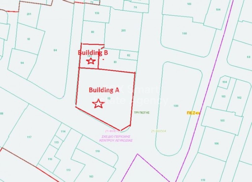 Investment opportunity in one fo the best locations in town. The asset near Eleftherias Square consists of two adjacent buildings at the entrance of Ledras street Nicosia. It is located on a corner that abuts onto Ledras, Rigenis and Fokionos Streets. The primary building is situated on a plot of land of 501sqm and consists of a basement of 489sqm, a mezzanine of 260sqm, a GF of 424sqm, a 1st floor with a covered area of 417qm and uncovered 7sqm, a 2nd floor with a covered area of 403qm and 34sqm uncovered and a 3rd floor with a covered area of 353sqm and uncovered of 63sqm. The secondary building is situated on a plot of land of 81sqm and consists of a GF of 67sqm and a 1st floor of 55sqm covered area. The immediate area of the asset comprises of commercial developments. Partially occupied.