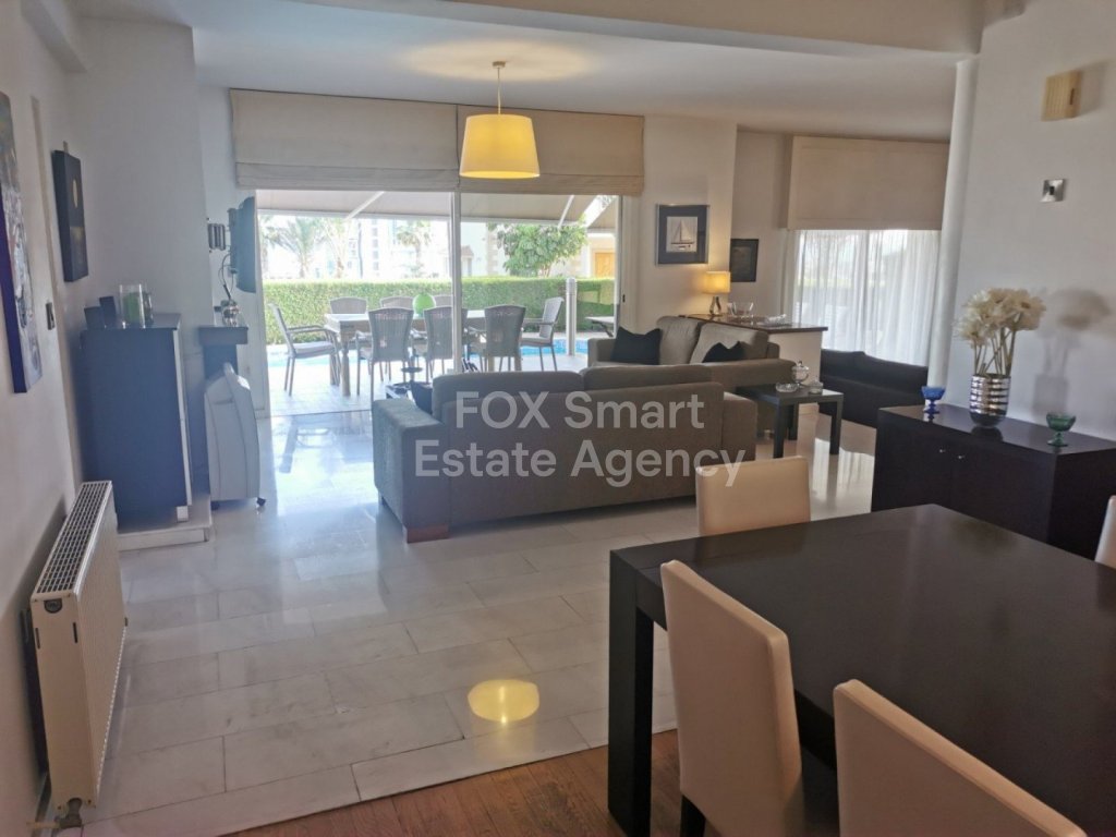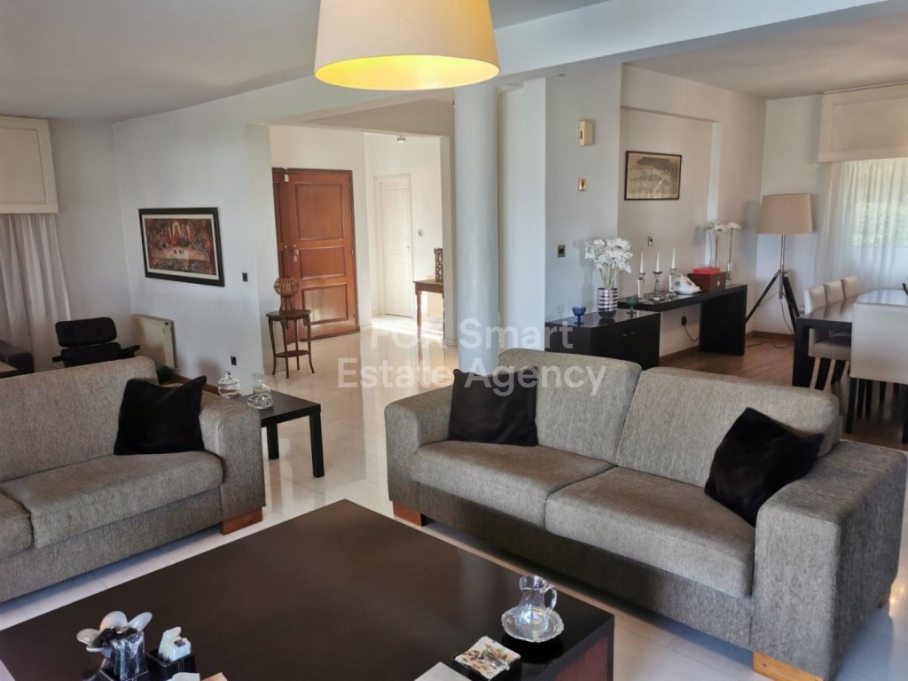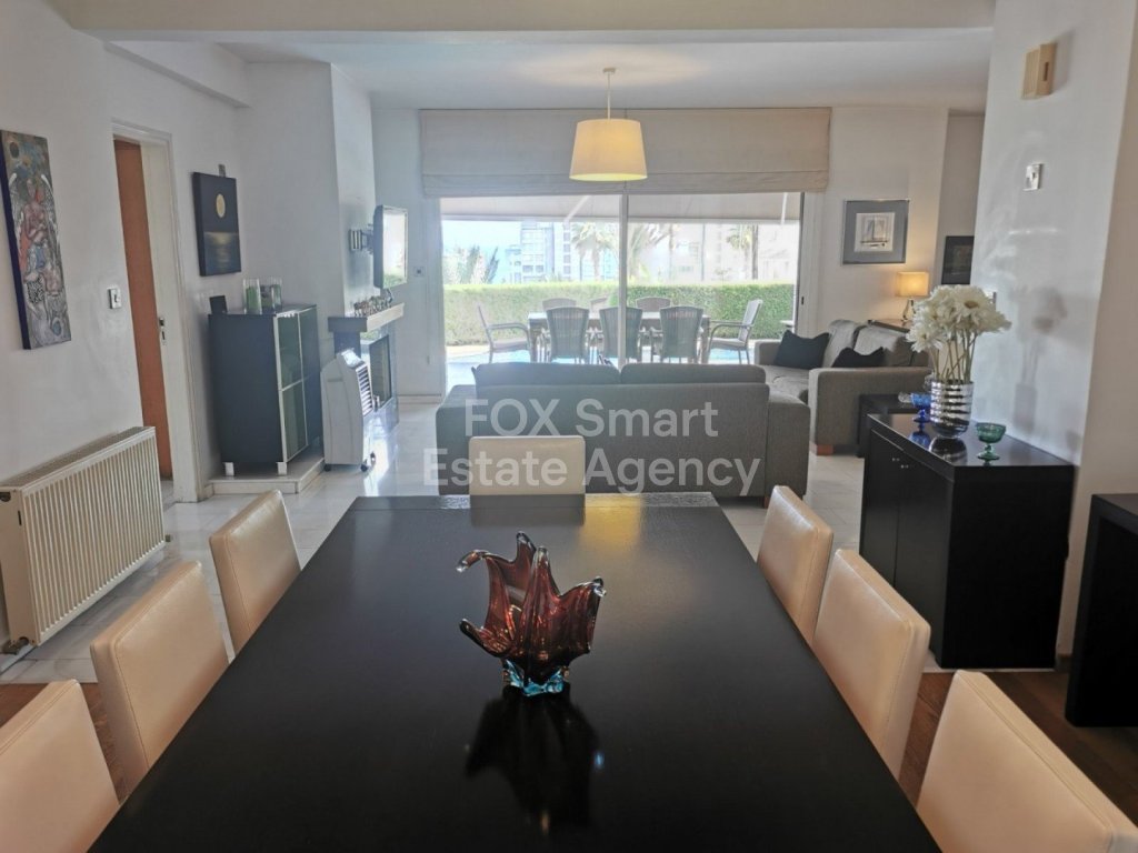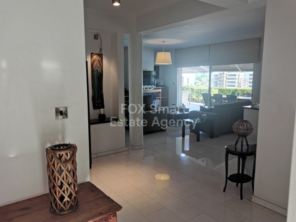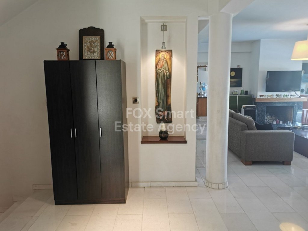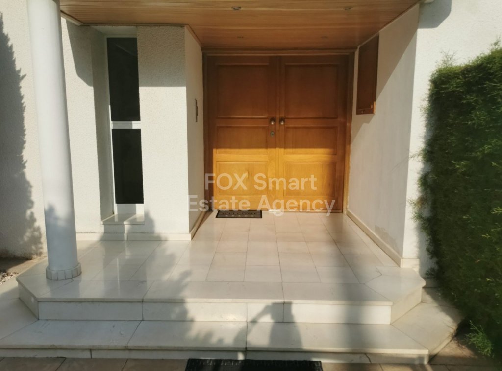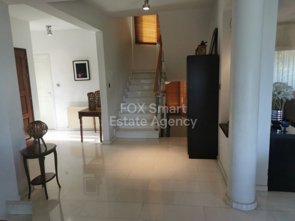 Lovely five bedroom villa in Agios Tychonas with swimming pool and sea view is available now. It has internal covered area 431 square meters and the plot size 954 square meters. There is separate kitchen with two living rooms , one sitting room, two dining rooms and guest w/c. Also there is a fire place, store room and one utility room.There are four bedrooms and one of them has en-suite bathroom, all with fitted wardrobes and a family bathroom on the first floor. Outside of the building there is a nice big garden with trees and flowers, with automatic watering system and large covered parking space for three cars with electric gate..There is a maids-room , playing room, utility room and kitchenette. The aluminium doors and windows are double glazed with security locks. It has solar water heater with pressure. Also it has security system , alarm system, a/c in all areas diesel central heating and water drilling .The house is located on a hill of Agios Tychonas with view of Limassol and is only five minutes drive from the sea and ten minutes drive from Limassol City.Located in a quiet ,nice area surrounded by nice houses at a dead end road.It has easy access to the motorway.