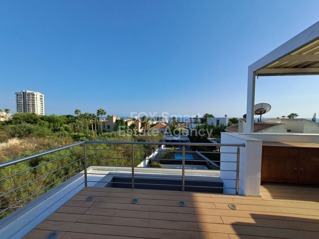 An exceptional four bedroom property located on the seafront of Limassol. This charming residence boasts beautiful sea views from the Roof Garden, a private swimming pool and mature garden. The house has a lovely inside open plan area with guest WC and access to the outdoor terrace with pool. The first level has three spacious bedrooms, the master has en-suite shower and a family bathroom is shared by the second and third bedrooms. The basement area has a cinema room, fourth bedroom with en-suite shower and sauna. A fabulous roof garden enjoys a beautiful outdoor seating area with barbecue and amazing views. Easy access to the seafront road, the highway and just a few metres to the Sea. A truly marvellous seafront property which has to be seen to be fully appreciated. Please call for further information and a viewing.