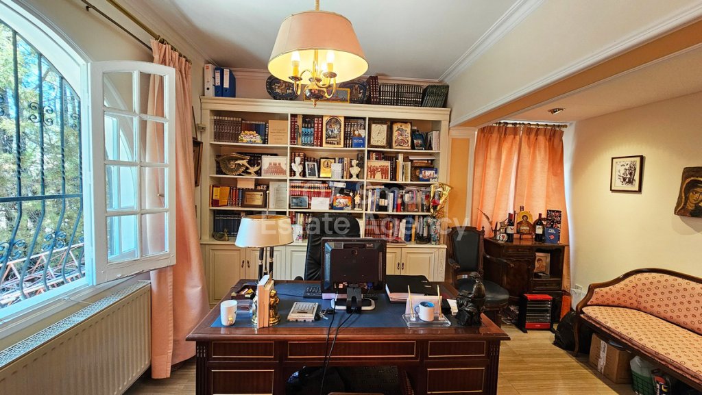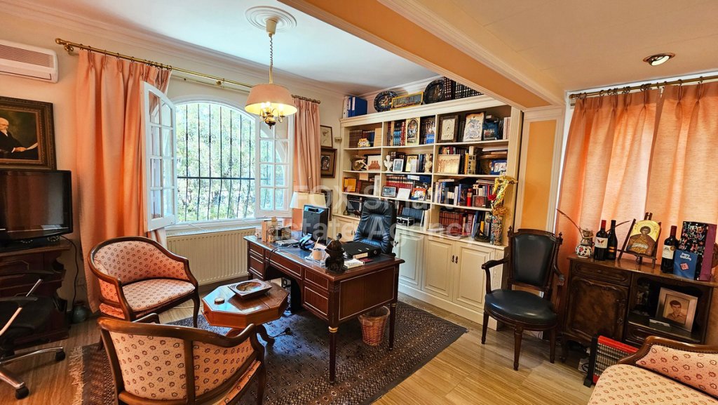 - The ground-floor consists of a massive living room the features a fireplace and marble floors, TV area and dining area with nice greenish views to the garden, a separated and fully equipped kitchen with all necessary appliances, a big office, and a quest w/c and one bedroom with en-suite.