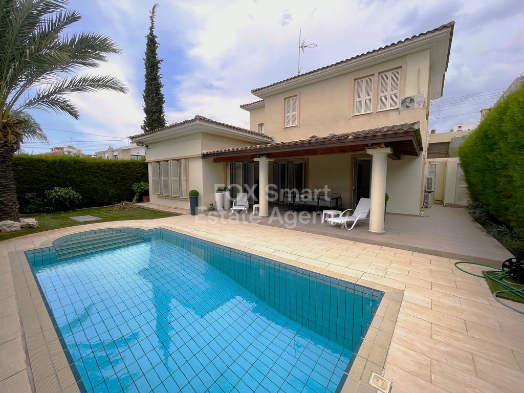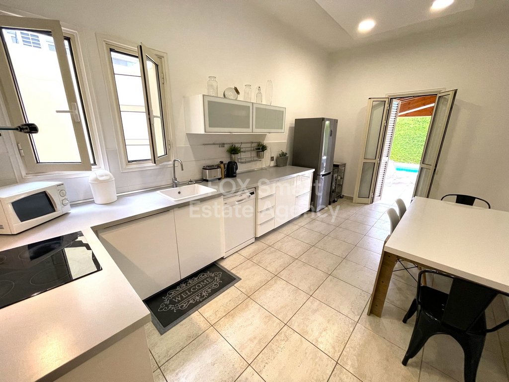 For rent furnished house with swimming pool in Latsia, 5 min drive to the Mall of Cyprus. PHOTOVOLTAIC SYSTEM INSTALLED 13kwH. Flexible 6-month contract