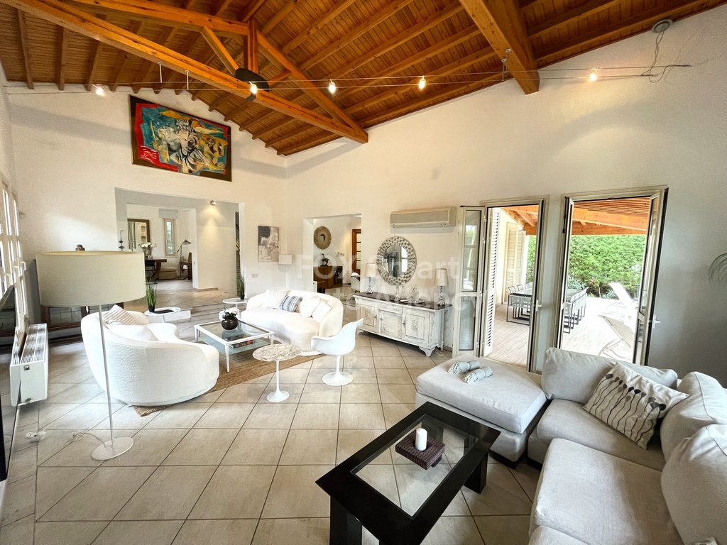 • High wooden ceiling in the living room.