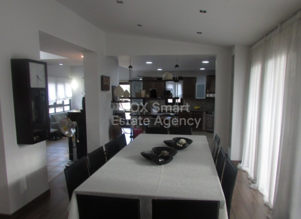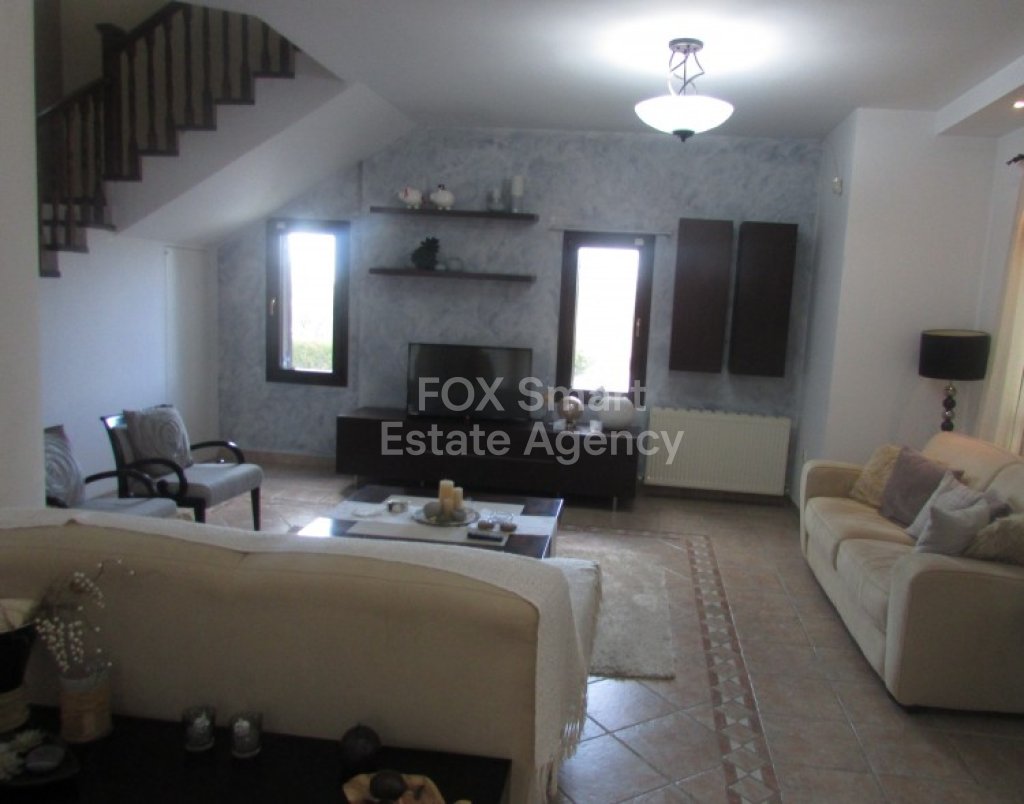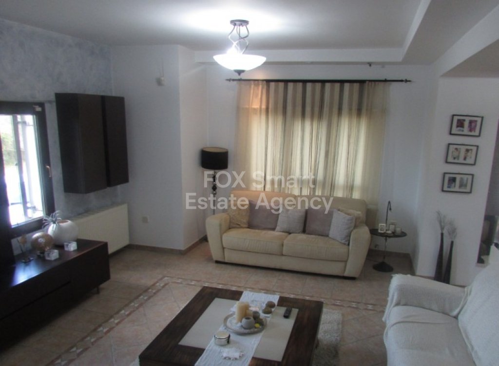 House for rent in an excellent condition in a quiet area at Lythrodontas village. It consists of an open plan space entrance, lounge, 2 sitting area, dining area, kitchen with laundry room, one office, quest toilet and on the first floor is the master bedroom en suite and wardrobe, another two very well size bedroom that sharing the main bathroom.