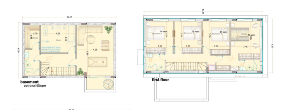 As you walk up to the first floor via the internal staircases made of marble, four spacious bedrooms await, along with 2 bathrooms featuring premium fixtures. But the allure doesn’t end there. Continue further to the roof garden, where panoramic sea views and starry nights will set the theme.