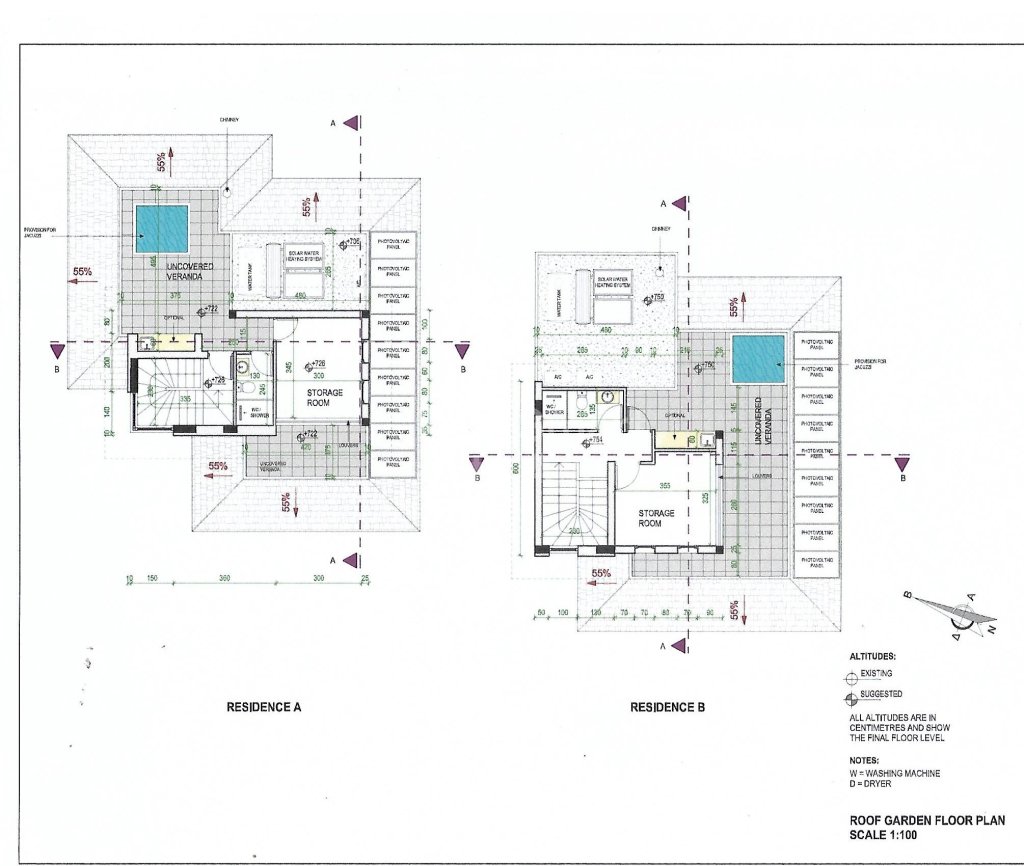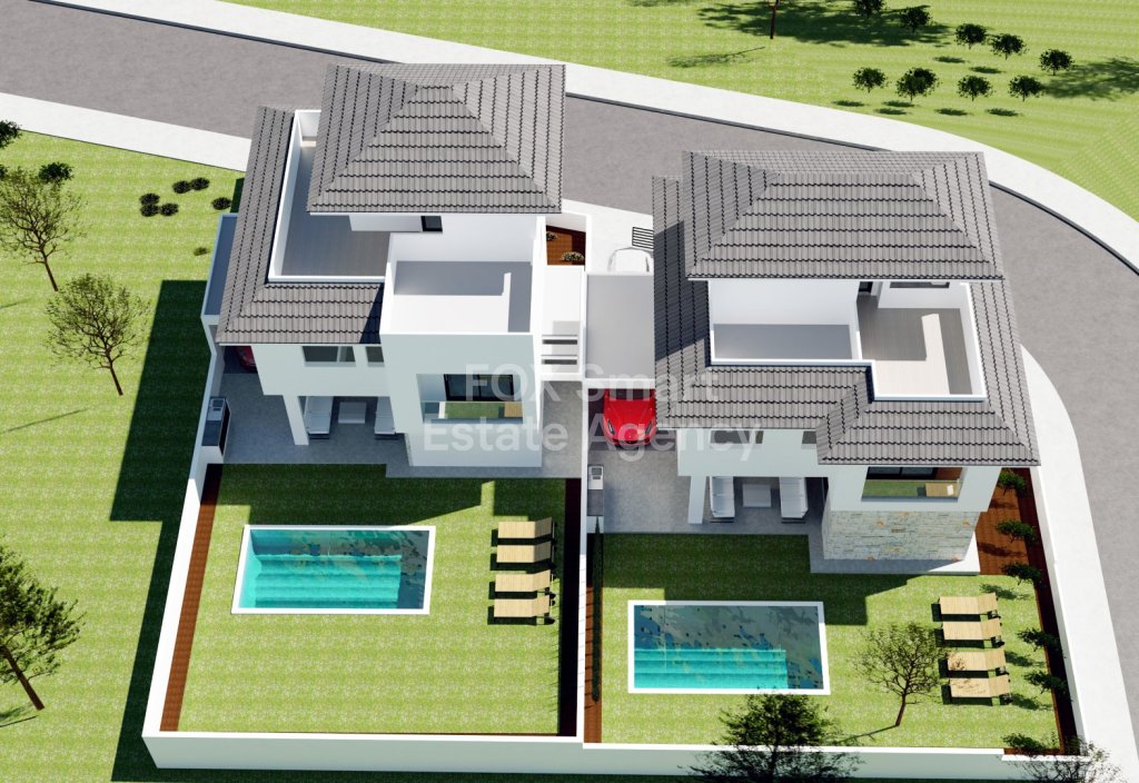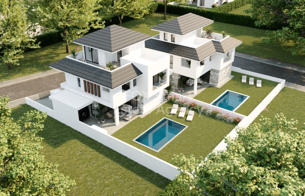 Five bedroom house, under construction, for sale, walking distance to the beach with 39sq.m. roof garden. The ground floor consists of the living and kitchen area, one bedroom and one bathroom. On the upper floor four bedroom, two bedrooms en suite and one bathroom. On the roof a nice veranda facing the beach, one room and a bathroom. The garden is huge, with a private swimming pool and outdoors sitting space. The house will be delivered by the end of 2025.