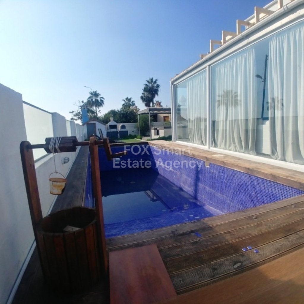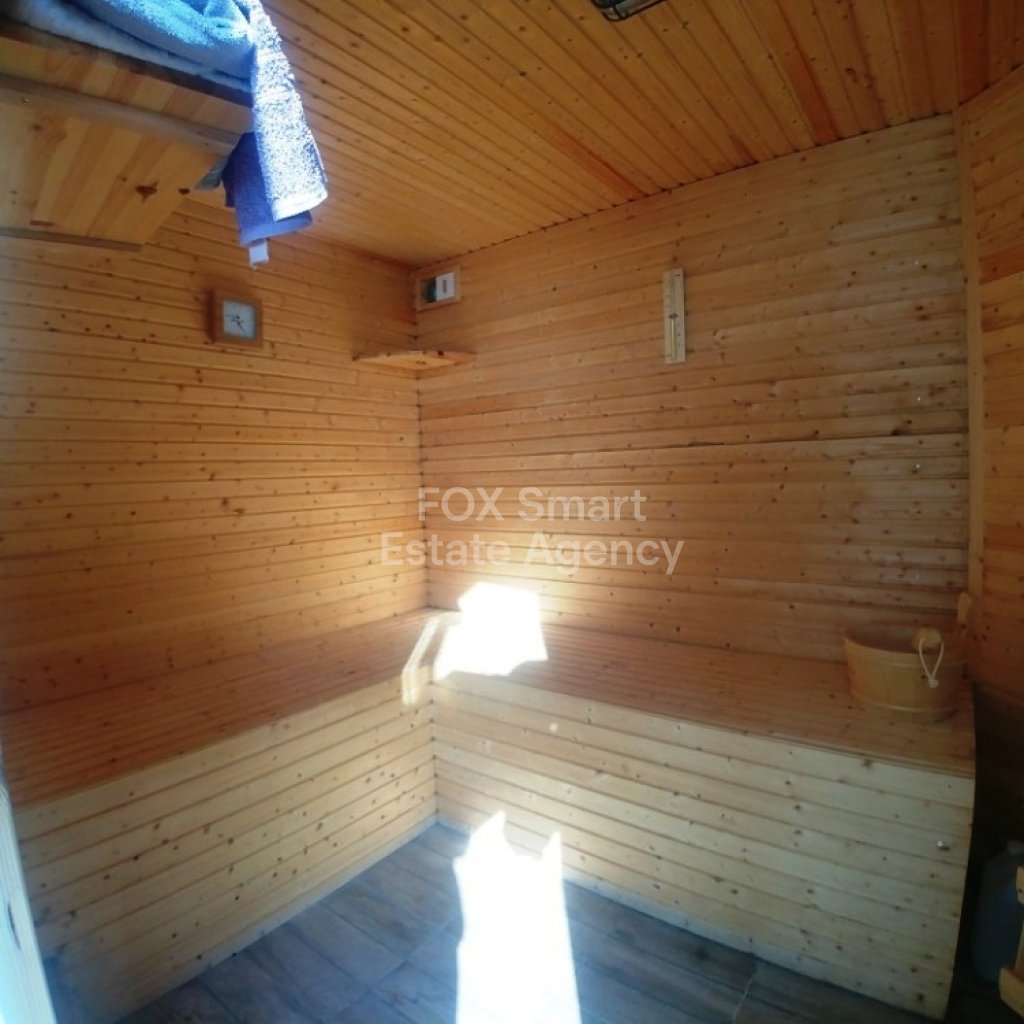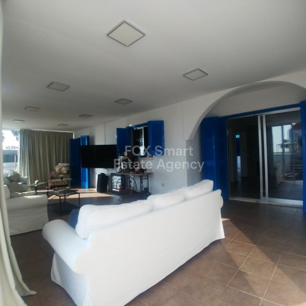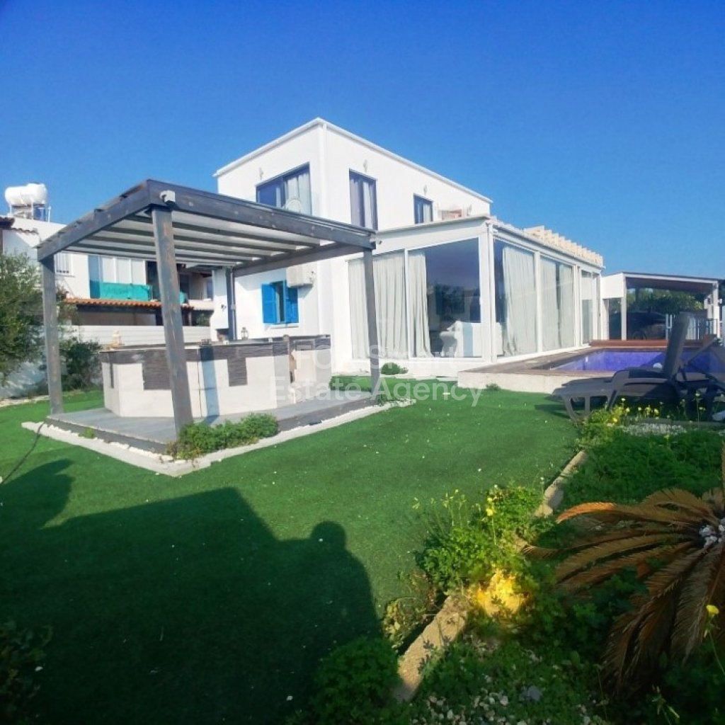 A unique house, located in Pervolia, just a few meters from the sea and with full sea views. Is an ideal holiday investment opportunity or a family house. Is separated to a Ground and to an Upper floor house. Beautiful landscaped gardens with jacuzzi,trees and a private 8x3 metersswimming pool. The ground floor houseinternal areacomprisesof an open plan kitchen with dining/living room, a full bathroom, 2 bedrooms, the guests w.c., the covered and closed with glass doors frontveranda and a private sauna. The upper floor house consists of the open plan kitchen with dining area, a family bathroom and 2 bedrooms, a balcony and thelarge veranda.