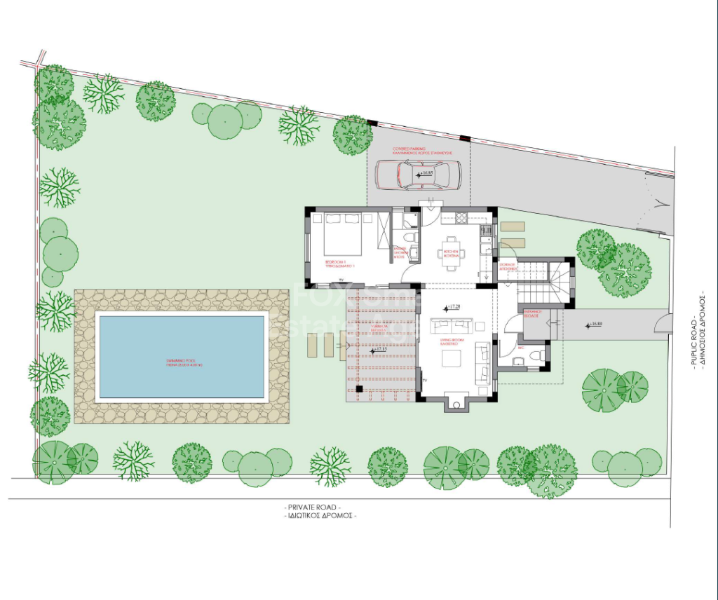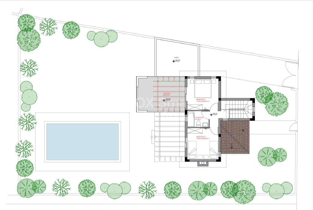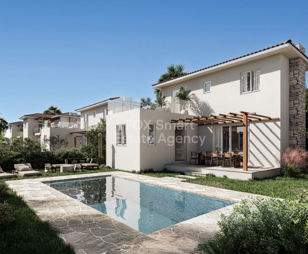 Three bedroom house for sale, off-plan, 300m from the beach, with a private swimmimg pool. Open plan living and kitchen area, one en-suite bedroom and a quest w/c. on the ground floor. One the upper floor two bedrooms and a whole bathroom. The price includes four airconditioning units. The house will be delivered 14 months after signing the contract of sale.