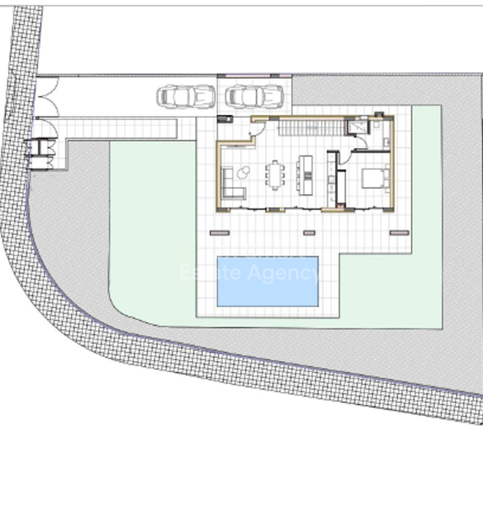 This modern home offers stylish living with stunning sea views, just a short walk from the beach. The ground floor features an open-plan living, dining, and kitchen area, plus one bedroom and bathroom, flowing effortlessly onto a terrace, private courtyard, and swimming pool—perfect for outdoor entertaining and relaxing. Upstairs are three spacious bedrooms, including a master with en-suite shower, and a family bathroom. A rooftop level with a shower room provides additional outdoor space for leisure or enjoying the views. Private parking and high-quality finishes complete this home. The development comprises 24 houses and is currently off-plan.