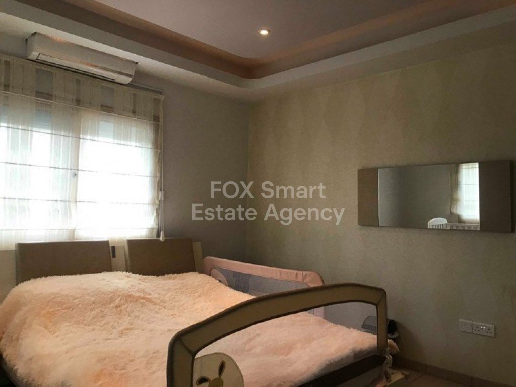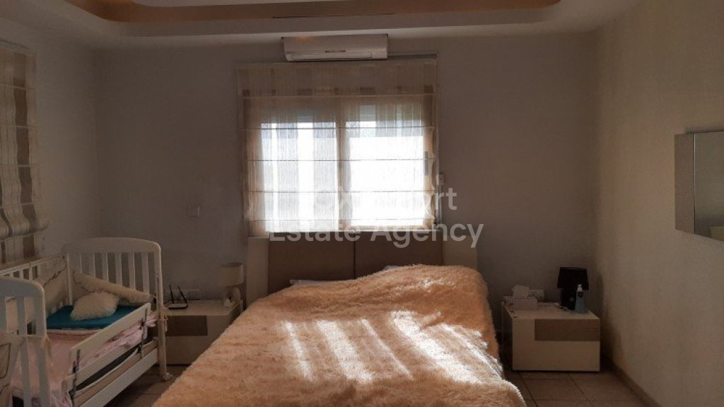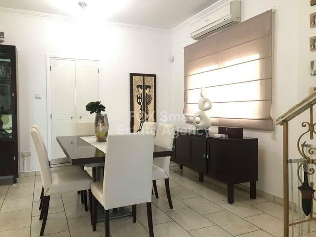 The house is built on 3 levels with the swimming pool level being a self contained apartment with its own kitchen and bathroom.The ground floor has a large living/ dining room and a large separate kitchen.There are 2 bedrooms upstairs with the master bedroom enjoying a private bathroom and walk in wardrobe while the other bedroom makes use of the family bathroom.There is air-condition and electric shutters throughout the property.The property also has a private swimming pool and garden area.