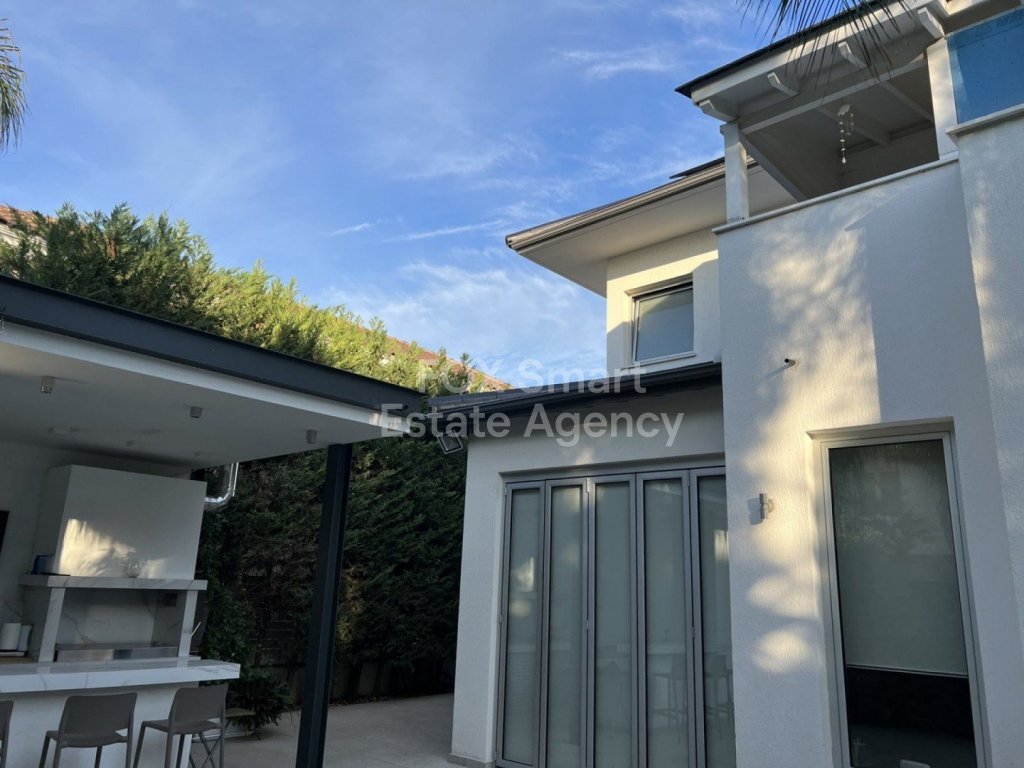 An exceptional 2 level 4 bedroom luxury villa in Agios Spyridonas the most nicest area in Limassol.It has private parking for two cars with electrical gate.Also it has a beautiful garden and private swimming pool, in addition to sharing a green lawn, and a children's playground for more space and comfort.On the ground floor there is an open-plan kitchen, a family room with an open-plan living/dinning room with covered veranda , an utility room and a guest wc.On the first floor is the master bedroom en suite with walk in wardrobe and also another three bedrooms .This beautiful villa has central heating, solar panels connected to electricity supply and control vacuum system.Also it is fully insulated build with an energy rating.It has quick access to all needed amenities including supermarkets, parks and restaurants.